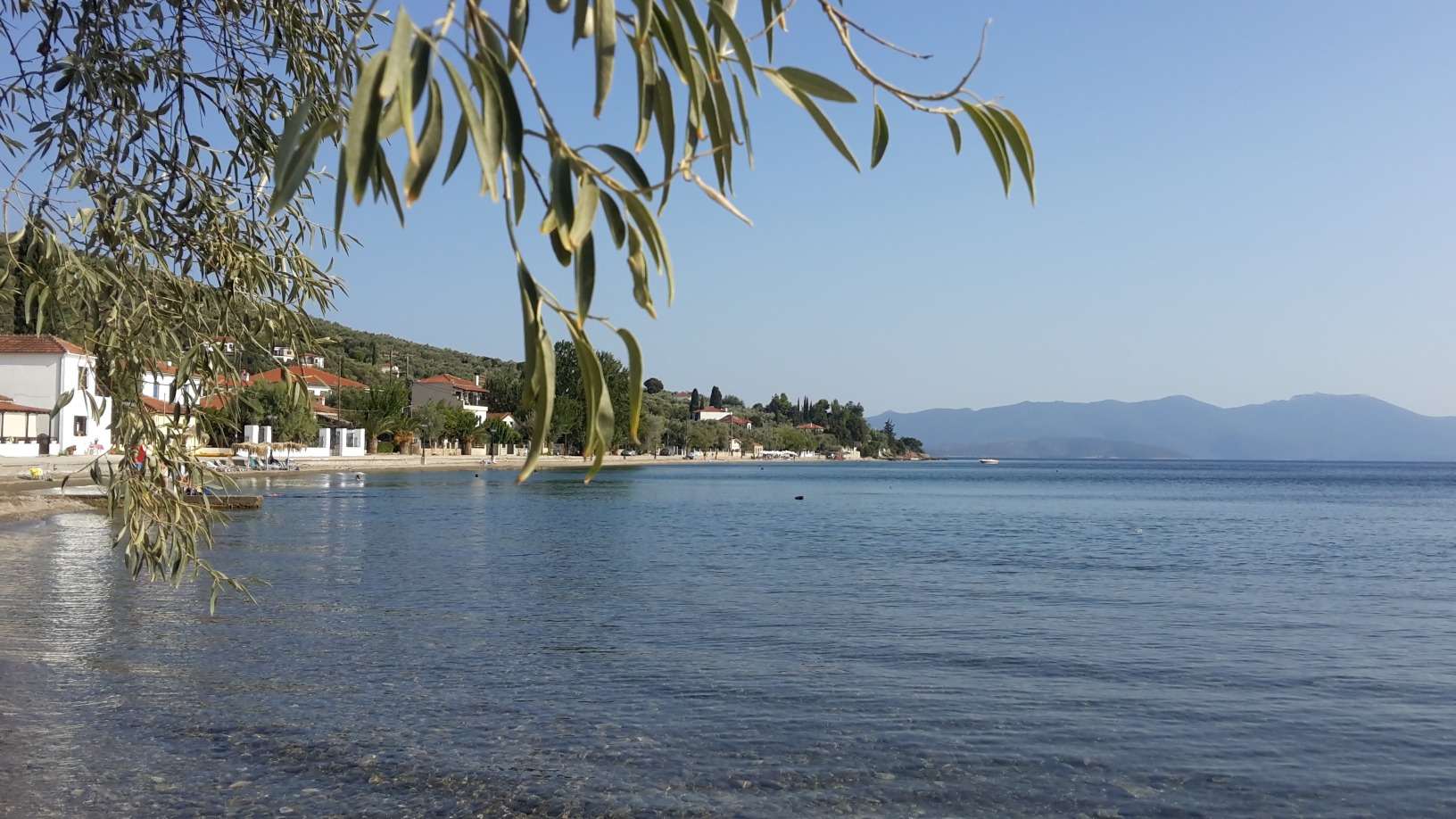 My personal favourite is Kalamos that stands out for being very picturesque and calm. Here too, the view between the olive trees, as you drive down towards the village, is magical. A small white chapel, hidden among the cypress trees and marigolds, marks the entrance of Kalamos, where, behind the narrow beach you’ll find a tavern and many beautiful houses, many of which are available to rent. The place has an old-fashioned charm, a sense of summer carefreeness from past eras, where the bathers leave the beach to have their afternoon siesta and return later for a refreshing swim. The lovely, golden sunset you can enjoy on the beach is the cherry on top.