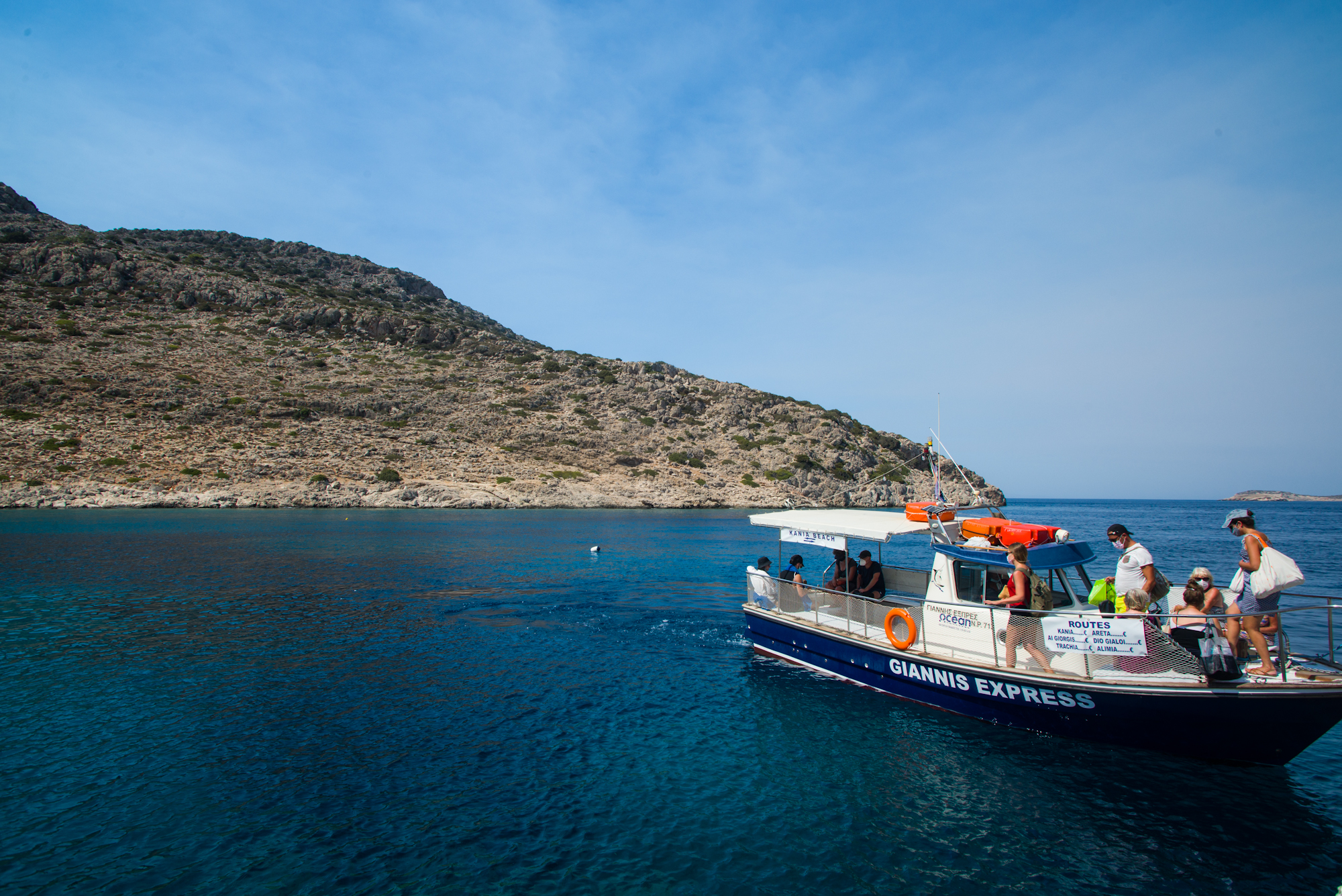 I get out of the water to speak to Garifalia who owns the bar-restaurant on the beach and is also the daughter of the captain who brought us here: “’Kania Beach’ first opened in 2011 and in the past two years our main focus is food, with fresh fish being our specialty, like red mullets, swordfish, red porgy etc that we get daily from the island’s fish boat. You must try the yellowfin tuna”. “I’m afraid there’s no time, we’ll do it next time,” I tell her. “Excuse me one second, I need to take this call from my father,” she politely interrupts, and I hear her say: “What? You can’t be back in time? Yes, yes, I’ll see what I can do.” And to me: “My father says he has too many people from other beaches and won’t be back to get you to the harbour in time for the last boat to Rhode.” Silence. “Tell the girls to come quick. I’ll arrange for someone to take you to the harbour in the truck.” And just like that – Magda who was swimming, Claire who was taking pictures, and I who lived it in real time – we found ourselves at the back of the truck on the way to the port. Stress and laughter all mixed together. “You do know that this is the only beach you can also reach by car?” Magda tells us, “All of the others, Agios Georgios, Tracheia, Areta, Dyo Giali, Alimia, can only be reached by boat.” Did we catch our boat you ask? Yes, this time we made it, but I did secretly hope we’d miss it so we could stay in Chalki just a little bit longer.