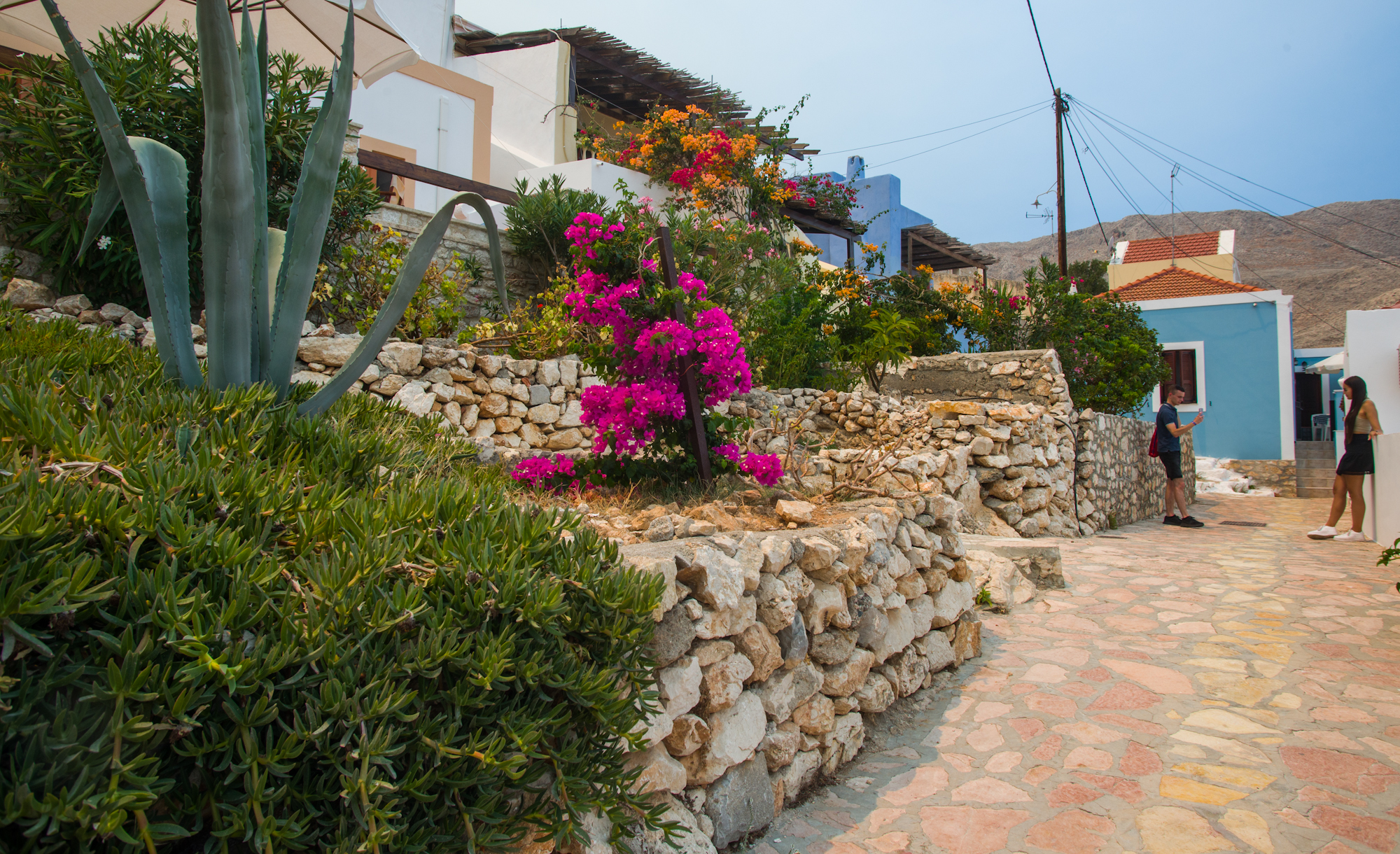 “Do you want me to make you a coffee at my home, before continuing our tour of Chalki?” Magda Korpi asks and obviously our answer is yes. “This part, on the west of the hill, was where the less fortunate of the island lived,” she tells us as she serves us coffee on her balcony, that overlooks the harbour and the four restored windmills that make the hilltop more beautiful. “We bought this house a few years ago and we’ve slowly restored it, with respect to the island’s traditional architecture. We’ve received quite flattering comments from guests through the years, from every corner of the earth, mostly because it has a past century vibe both indoors and outdoors, with addition of course of the modern comforts and amenities. I cherish every moment I’m here, and I love Chalki so much that the long distance from Athens means nothing to me when I get the chance to come here,” she tells us and we agree, as we leave her wonderful house to head towards the harbour.