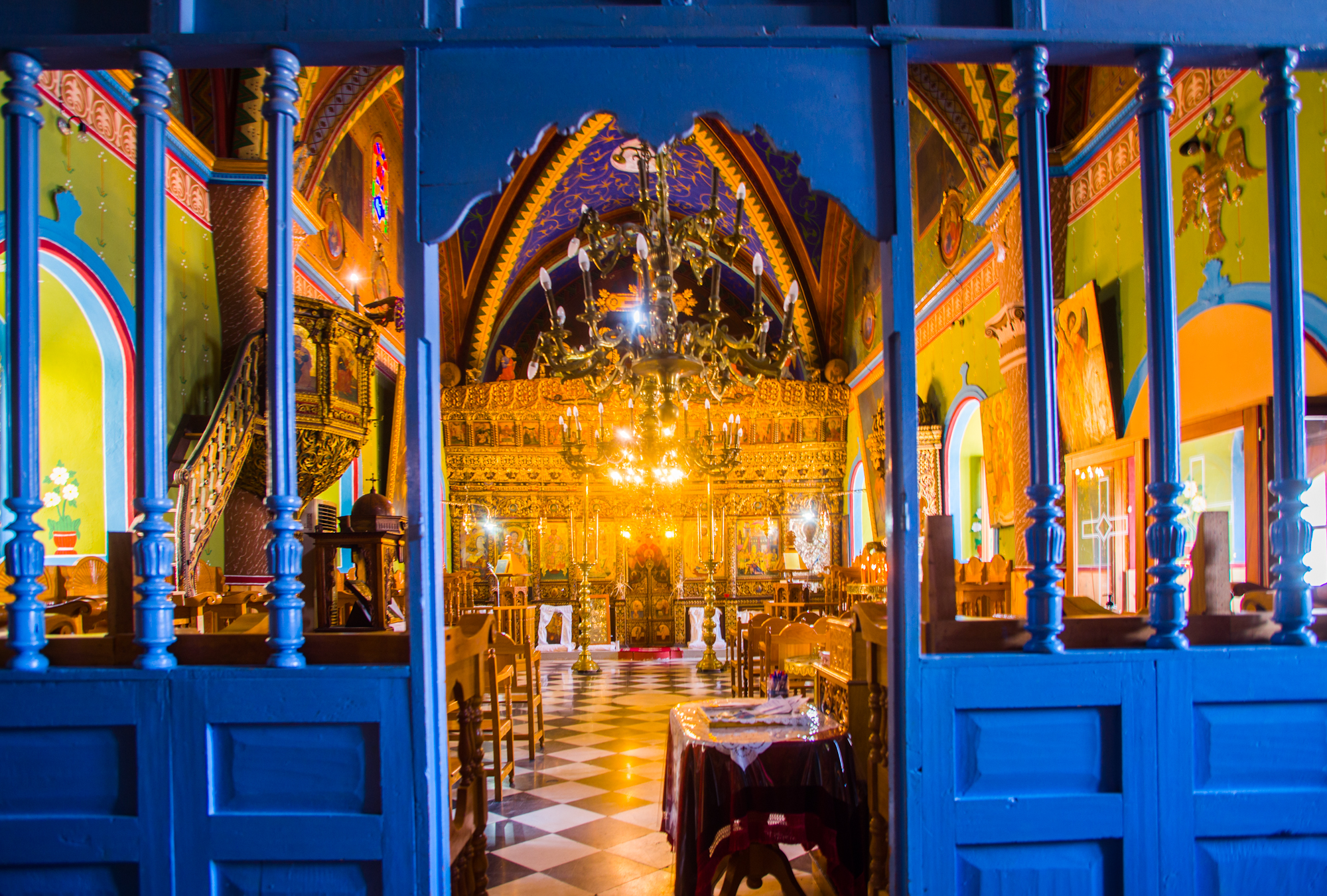 One of the typical examples of the architecture is the town hall, and its companion, the stone-built clock tower. While the church of Agios Nikolaos, the island’s patron saint, that was built in 1861 and whose pride is the imposing bell tower and the wooden altar, is also nearby. What impressed us even more was the pebble mosaic that graces the church’s large yard, portraying images inspired by Nature. The one with the cypress trees and the birds on their top was our favourite. These elaborate mosaics are called ‘chochlakia’ from the round pebbles they consist of and are a typical specimen of the island’s folk art, that can be found in many yards.