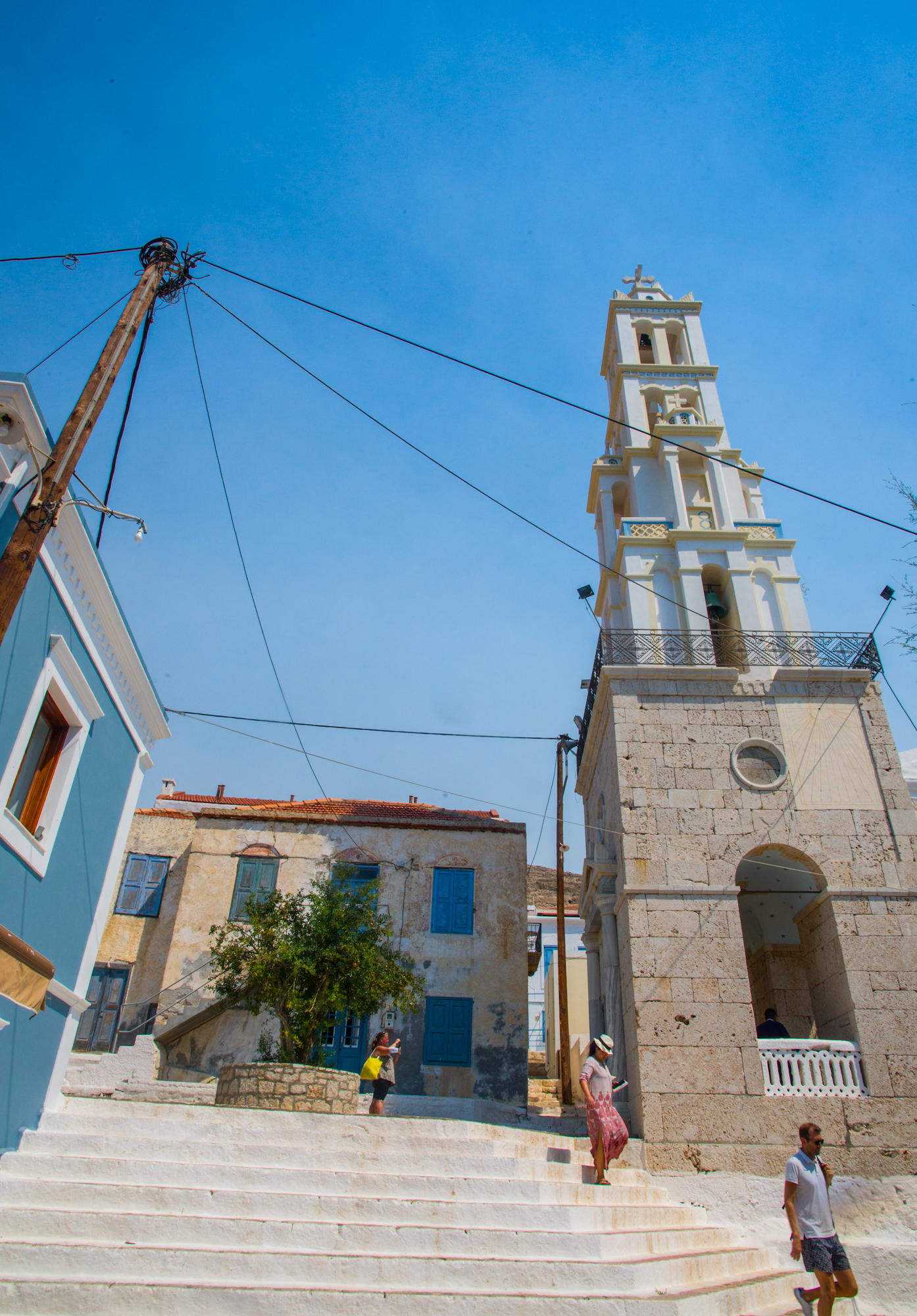 Such a vantage point location must have a castle;it dates from the 14th century, when the Knights of the Order of Agios Ioannis (St. John) from Rhode ceded Chalki as a fief to the Assanti family from the island Ischia in Italy. At the castle’s entrance you can still see the coat of arms of the Grand Master of the Order, Pierre d’ Aubusson. As you wander around in the silence of the castle’s imposing history, don’t pass by the deserted church of Agios Nikolaos, as inside you can see murals dating back to the 15t – 17th century.