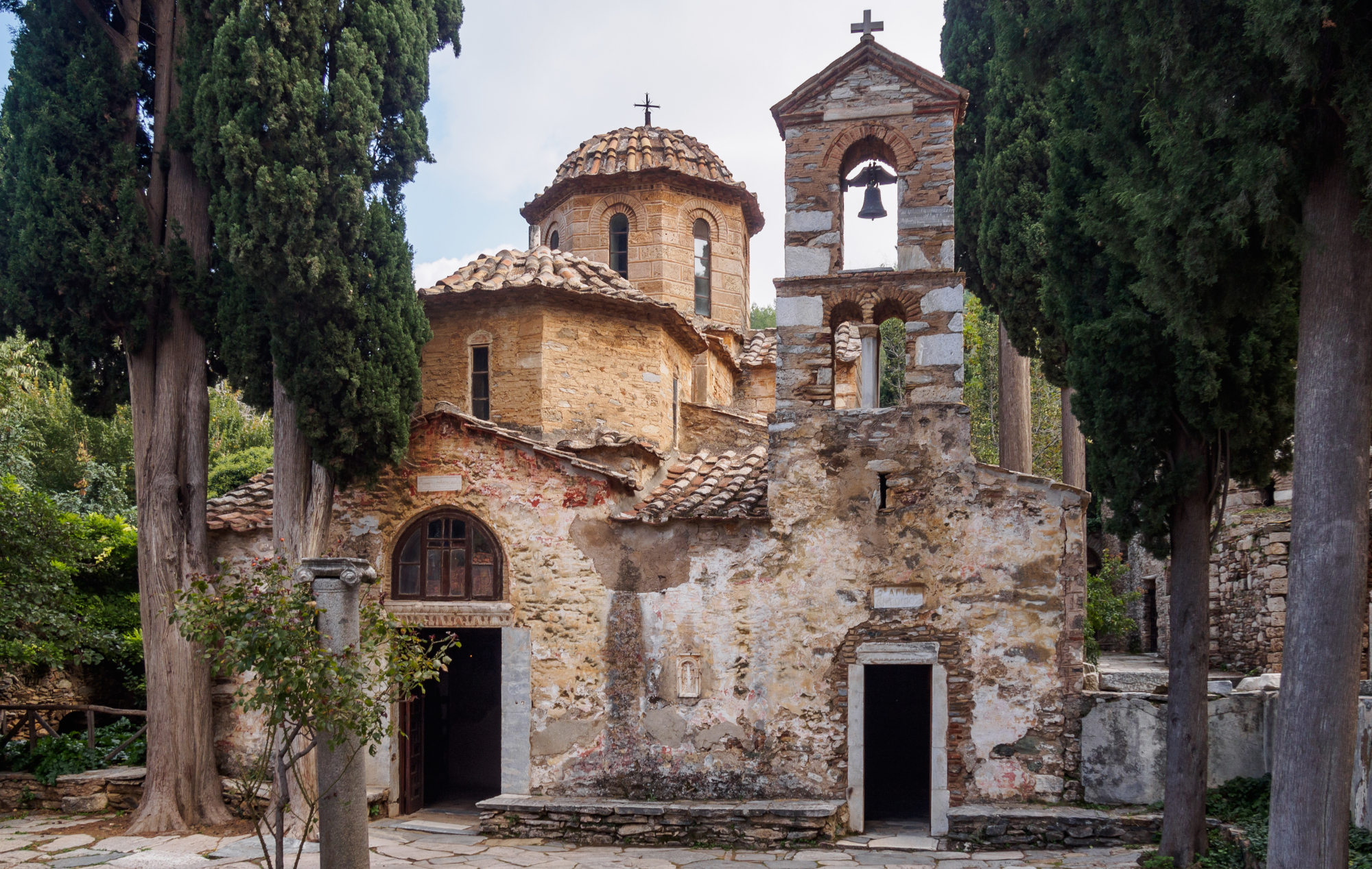 There are many routes and other points of interest, as Mount Hymettus is full of ancient marble quarries, mines, springs, caves and natural pools, churches and monasteries, of which the Monastery of Kessariani, dating back to the 12th century, is the most famous. A little further up the hill of Taxiarhes lies a complex of churches and chapels where hikers can admire the foundations of an early Christian basilica from the 5th-6th century, once the Franciscan monastery of Agios Markos, built during the Frankish occupation, and a church dedicated to the Agioi Taxiarches dating from the 17th century. The Monastery of Asterios, built in the 10th century, is dedicated to the Archangels Gabriel and Michael. It is a jewel of the mountain, as are the monasteries of Agios Georgios Koutalas of the 15th century and Agios Ioannis Kynigos of the 12th century.