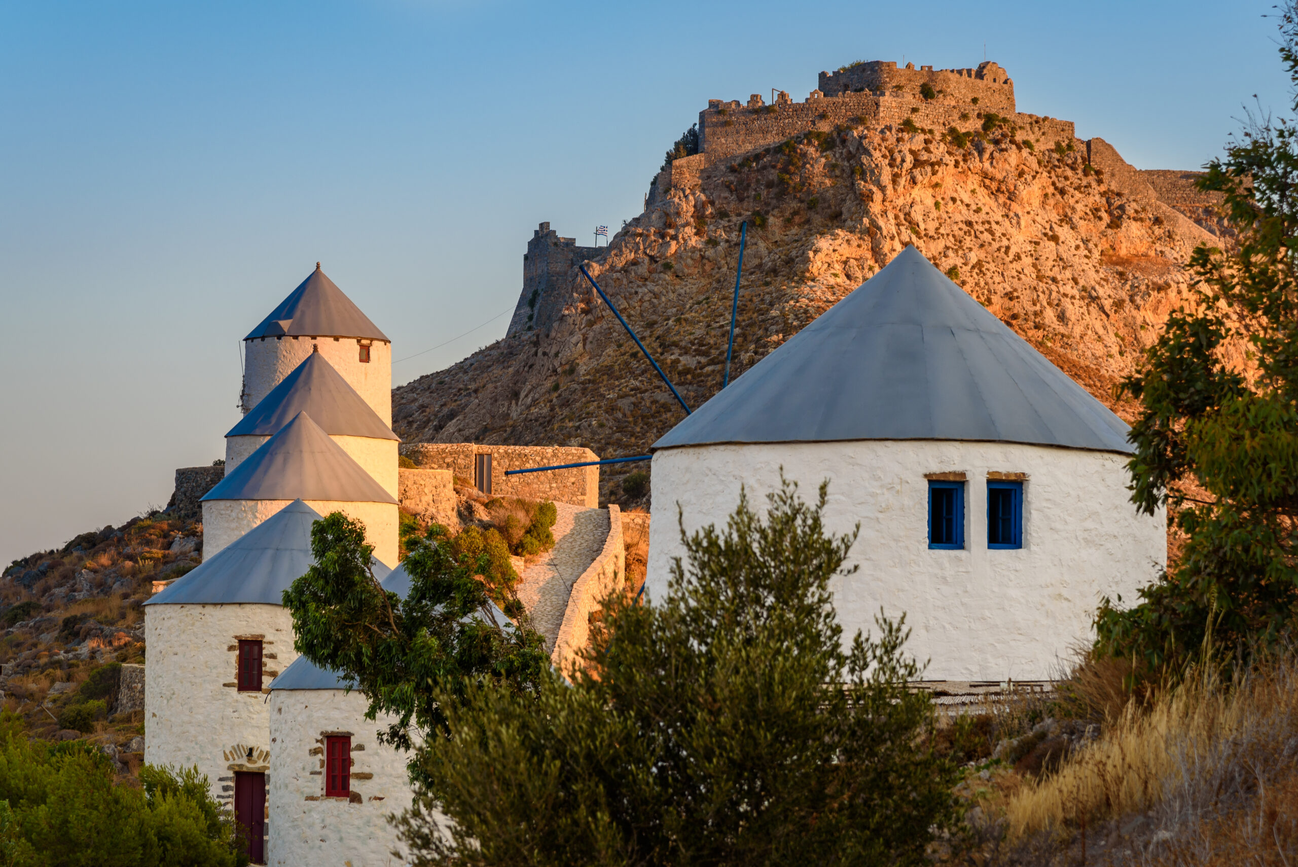 Platanos is in essence the capital of Leros that has merged with Agia Marina and truly takes visitors on a trip through time, filled as it is with neoclassical buildings, old windmills, and of course the Byzantine Kastro tis Panagias castle on the top of the Apitiki hill. From there, the view reaches Patmos, Kalymnos and even the coasts of Asia Minor, and the sunset seems right out of a postcard. It’s worth climbing the five hundred steps to the hill from Platanos to see every history variation – alternatively, you can drive directly to the windmills and the small chapel of Profitis Ilias that seems to have been painted there by a master painter. A bit further away, around one of the windmills you’ll find “Harris Bar” with an incredible view, and amazing cocktails, great music and chill vibes. It’s definitely the most impressive, detox place on the island.