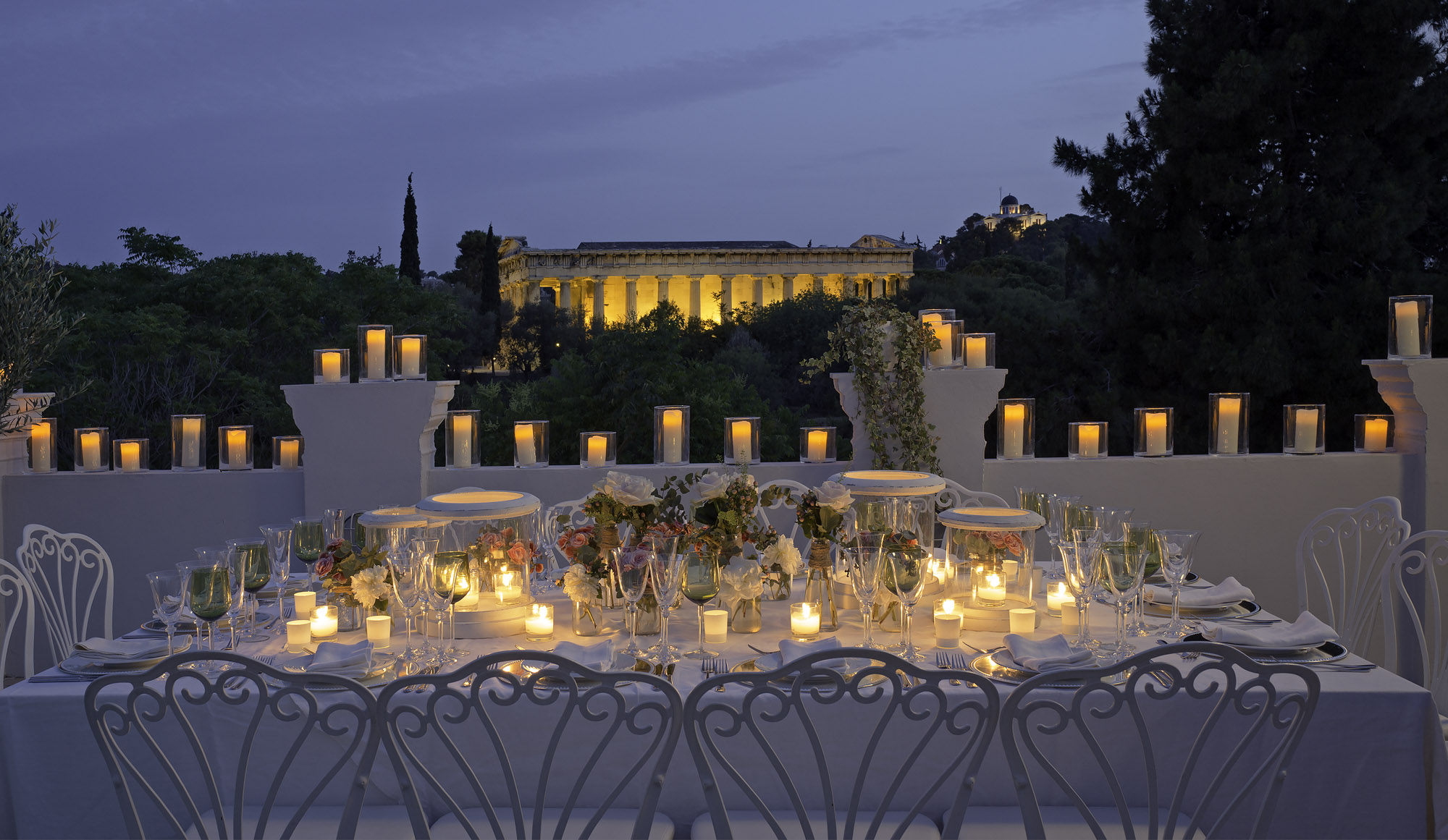 Situated in the Temple of Hephaestus area, on picturesque Adrianou, a pedestrian street, the Kuzina restaurant, housed at an old mansion of magnificent architecture, also has an additional surprise in store, a superb view of the Acropolis from its rooftop space, open between April and October. Kuzina’s amazingly situated rooftop earned the place a top-ten place on a BBC international list for restaurants offering the best view. But we wouldn’t recommend a restaurant simply on the strength of its view.