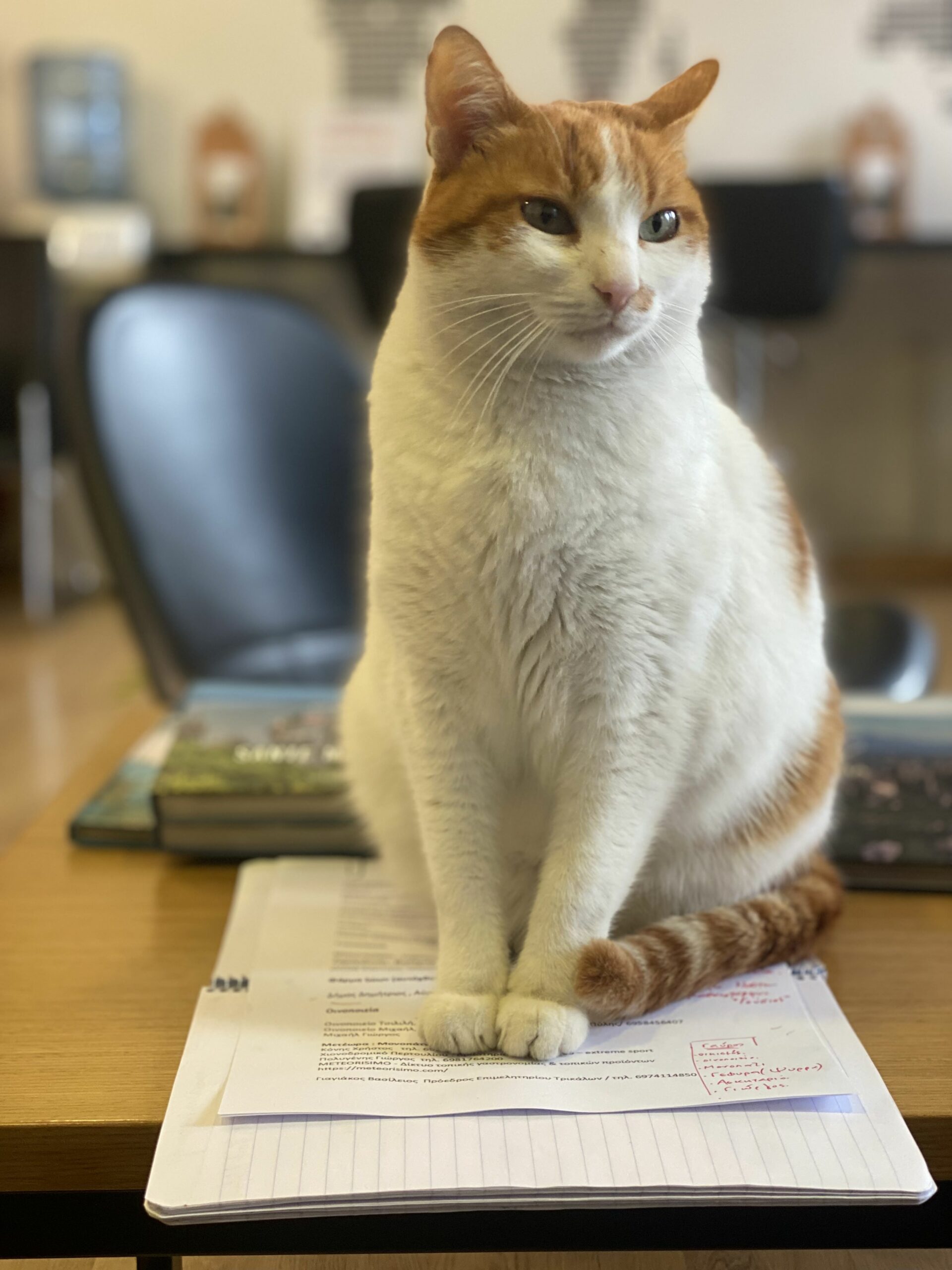 After a first look and a few first clicks with a view of the monasteries and the steep cliffs, we return to Kalambaka. There, in the city centre, I remember from my last time here, is located the space of VisitMeteora, where George Kourelis is waiting for us, a man who deeply loves his homeland and who, together with his family, decided to engage in tourism, organizing authentic experiences in unique places of the region. “Obviously Meteora is the focus and the reason why people from the US, Australia and even New Zealand come here,” he will tell us during our meeting in his office. I sit comfortably on the black sofa, facing the graphic representation of the globe, and, with George’s valuable help, we plan our next steps. Toula is VisitMeteora’s mascot; a beautiful and friendly cat who has its own daily schedule, regardless of the office’s bustle. So, at some point Toula decided that she would rest at my feet, which of course I couldn’t refuse her. In fact, our love for Toula was such that a few days after, we stopped by the office to say goodbye to her. It couldn’t have been otherwise with Amalia in the car, who I think took more photos of Toula than of Meteora.