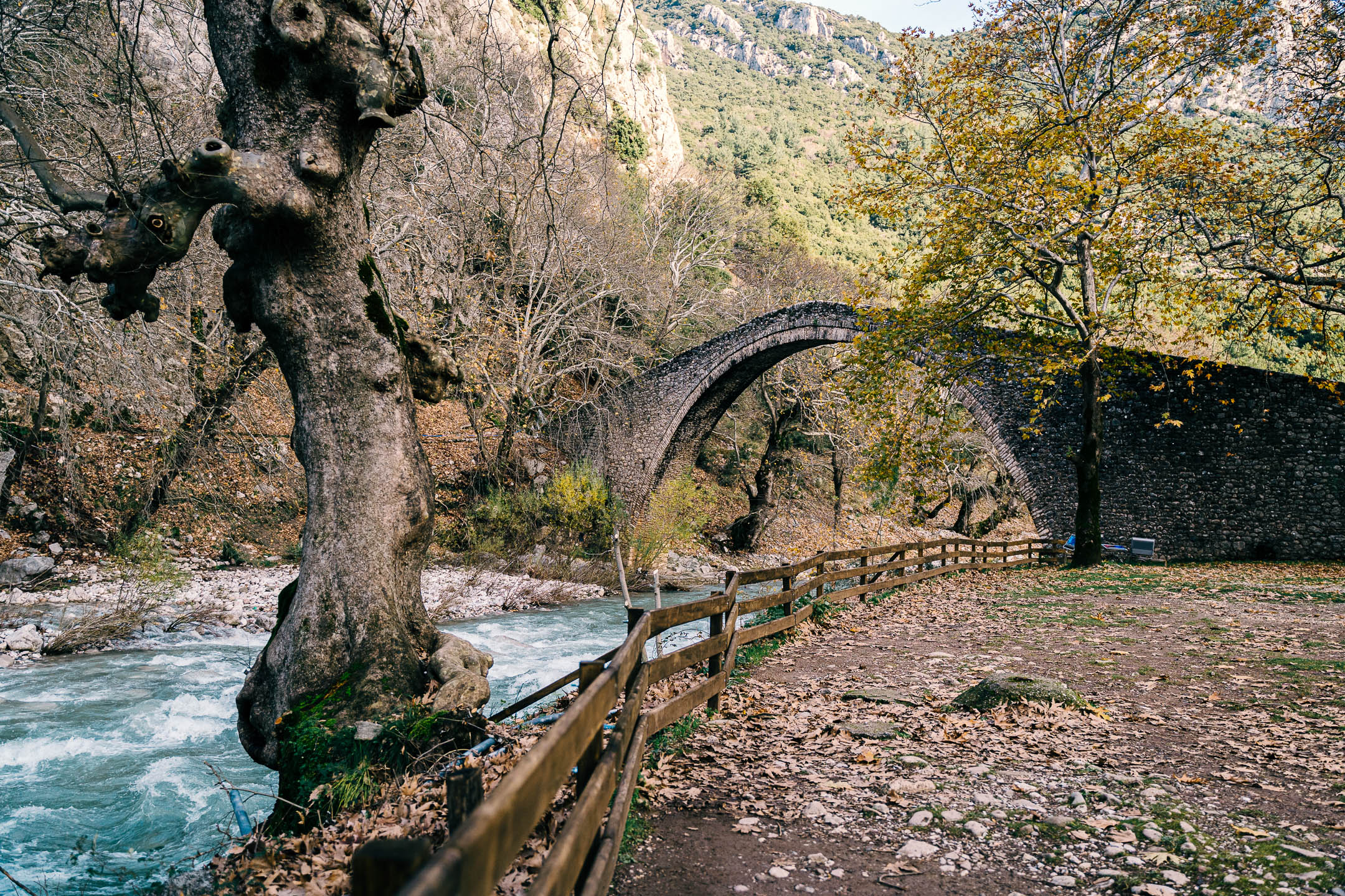 The opening of the arch reaches 29 meters and is 13 meters high. It was our first stop on a route that includes a visit to Elati, Pertouli, Neraidohori and various other villages of Aspropotamos, through which we will reach Kalambaka and Meteora and from there back to Trikala. The road network is pretty good, full of beautiful landscapes, through the forests of the area.
