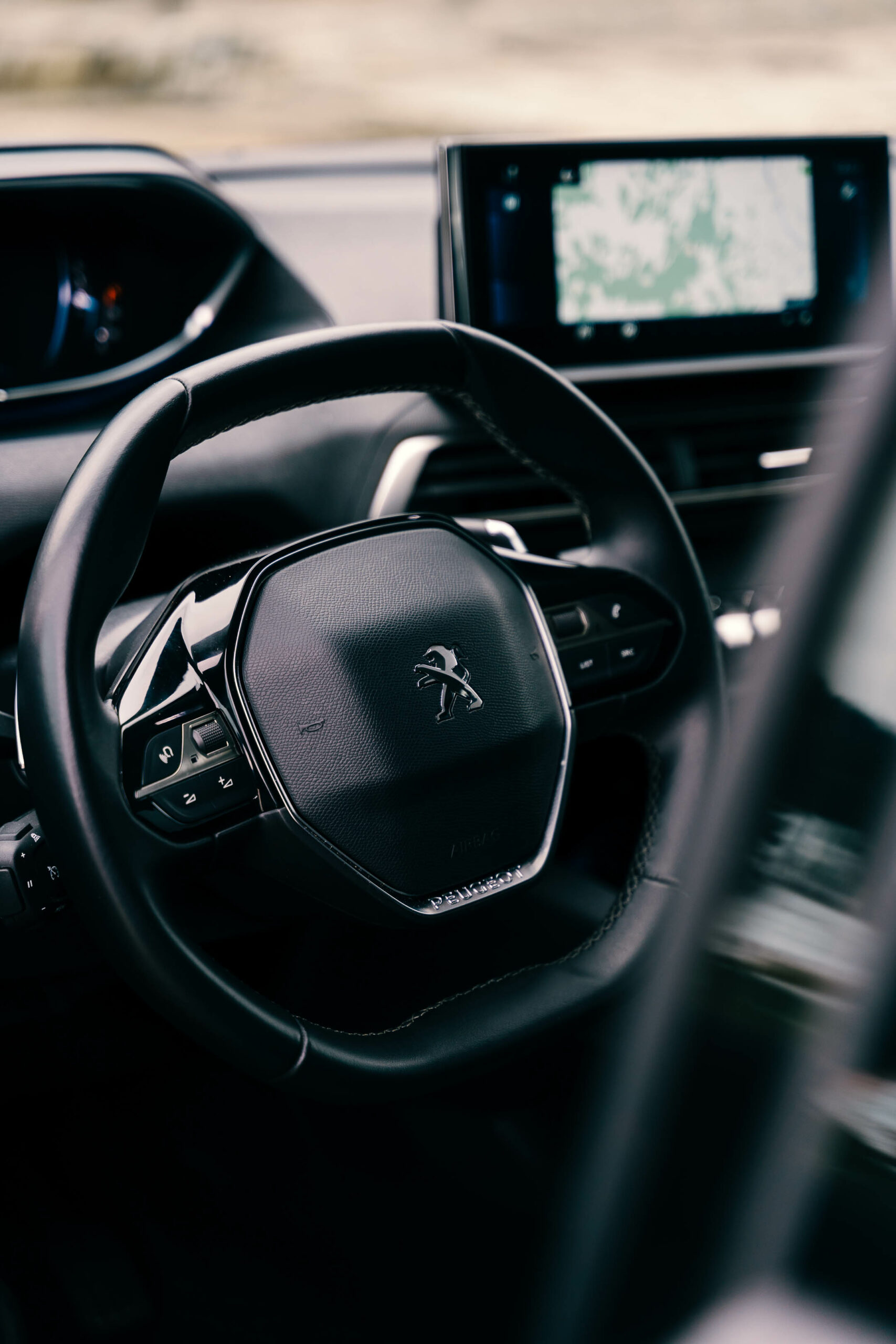 Just like that, with our coffees in two of the many cup holders our “companion” features to make the journey even more comfortable, the miles fly by. We have entered “Meteora” as our final destination in the car’s navigation system and, to be honest, I keep myself from clicking on the zoom out of the map to see which of all the geological formations it will take us to. From the steering wheel controls, I’ve set the i-cockpit to display the map there too, while some nice graphics inform us about points of interest on our route.