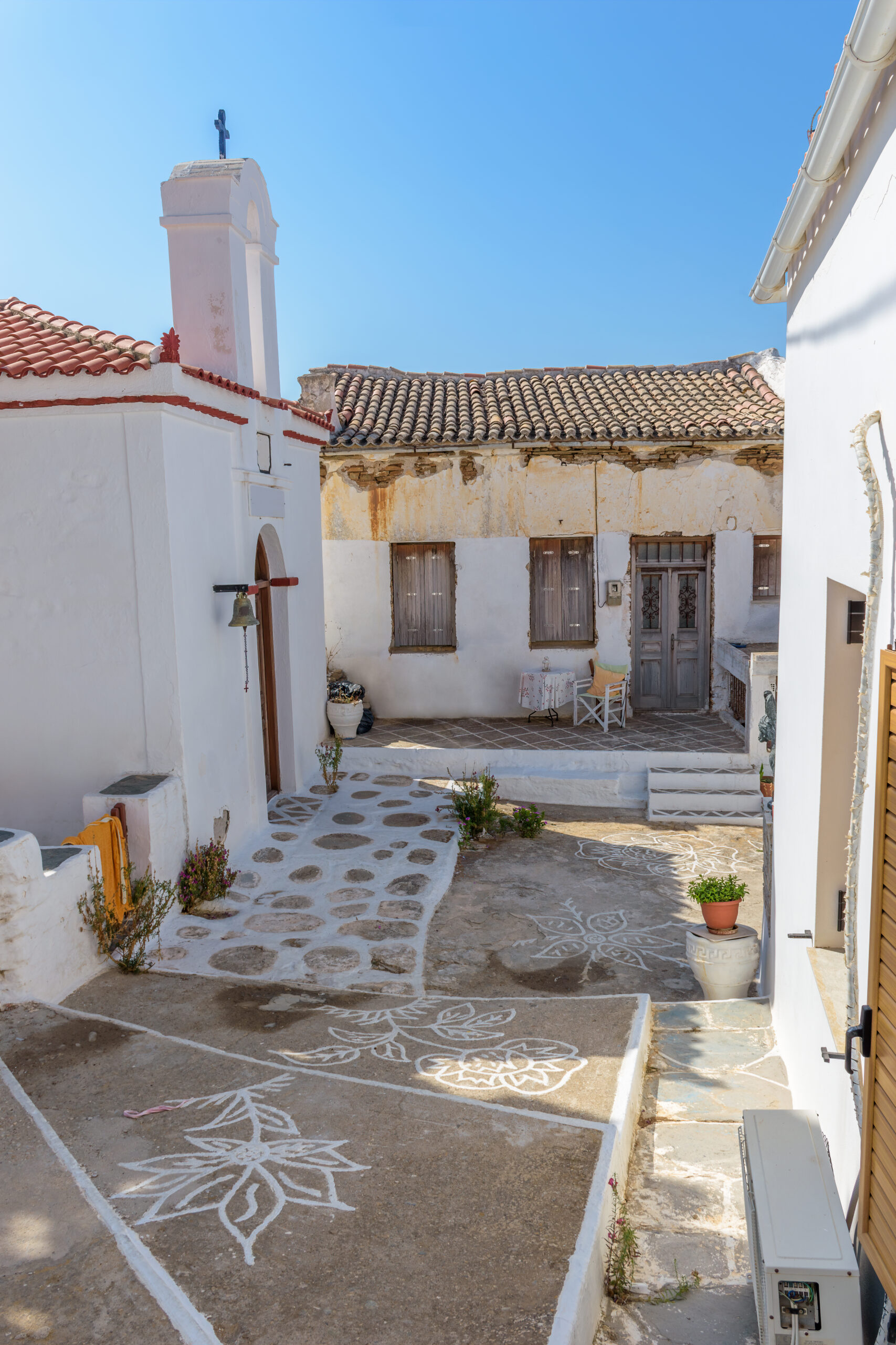 This settlement is as authentic as they come – and quieter than Chora. With a defensive layout, it’s a tangle of narrow lanes lined with bright pot plants, low lean-tos, and arches that conceal doors and windows. Wander the Cycladic labyrinth and let it unfold. The large central church is dedicated to the Apostles and Saint Anna. In the Galatas quarter, the parish church honors Saint Minas. There’s a Folklore Museum and an Ecclesiastical Museum in the church of Agios Georgios. For tavernas, small shops, and cafés, head to Piatsa.