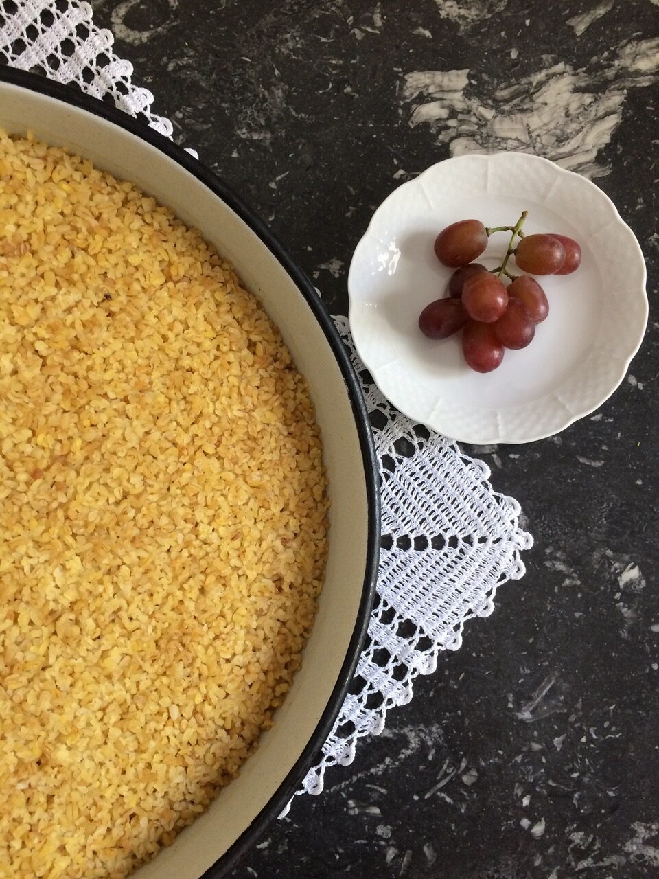 The cracked bulgur wheat of Giannitsa is a significant staple food throughout the entire Mediterranean region. It has been the basic food for populations living in these areas for centuries and today it is a dominant presence in the cuisine of Macedonia. In the region of Giannitsa, where excellent golden bulgur wheat is grown, we also find dozens of creative recipes as bulgur wheat has crept back into fashion. It can be served on its own as a full meal, as a accompaniment to meat and fish dishes, as a replacement for rice for added flavour, as a filling for dolma (stuffed vine or cabbage leaves), or even as a unique cake. It makes an excellent stuffing for poultry dishes, and if prepared in the oven with a few winter spinach leaves or squashes, it becomes an excellent accompaniment to any meat dish.