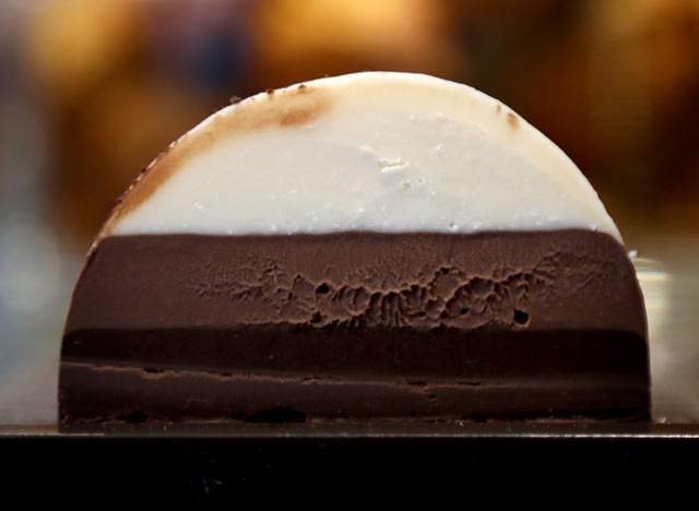What would you prefer, chocolate with Miranda biscuit that brings back childhood memories or chocolate with Ceylon cinnamon and ginger to give you energy? We enjoyed the Mayan hot chocolate with spices and chili, a special, tasty combination that also allowed us to get the dessert we couldn’t take our eyes off from the display