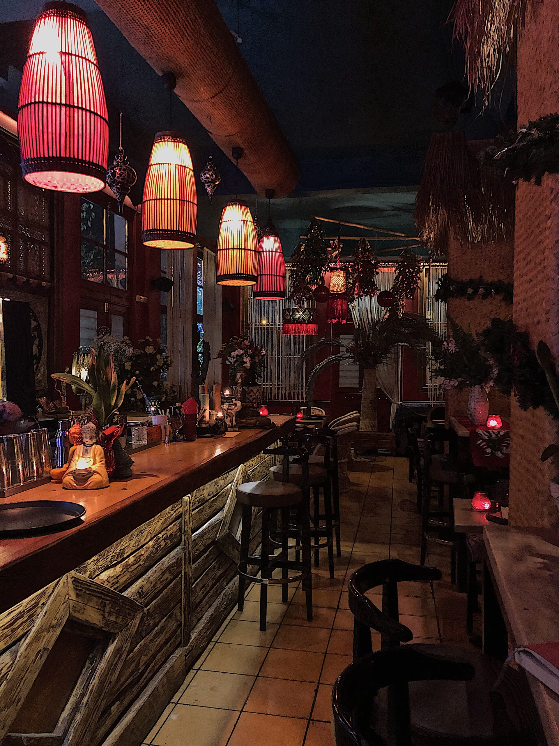 The Thai food at Blue Bamboo is served with very refreshing signature cocktails. Meals per person range from €20-25 (starter, soup, main course and a cocktail or beer).