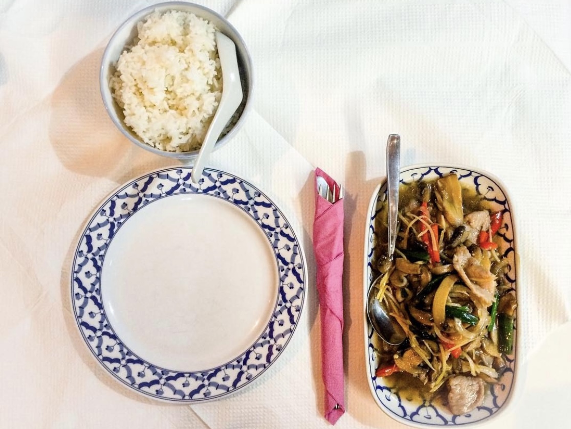 Rouan Thai offers a real Thai experience of hospitality and authentic flavours. The cost per person is estimated at €20-25 (starter, soup, main course and a beer).