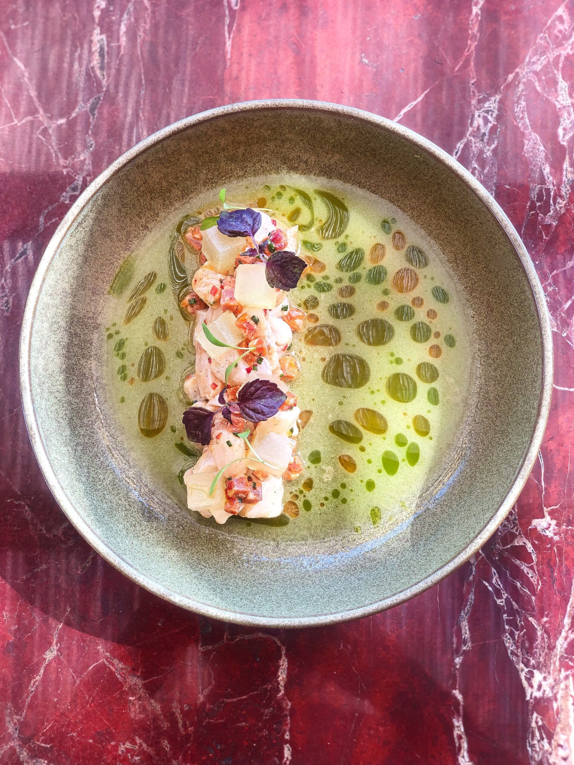 Based in a picturesque yard in Hora, Ceresio 7 is a culinary ambassador from Milan. Glamorous, dark and sexy, the setting, sided by trees and whitewashed houses plays host to contemporary Italian cooking.
