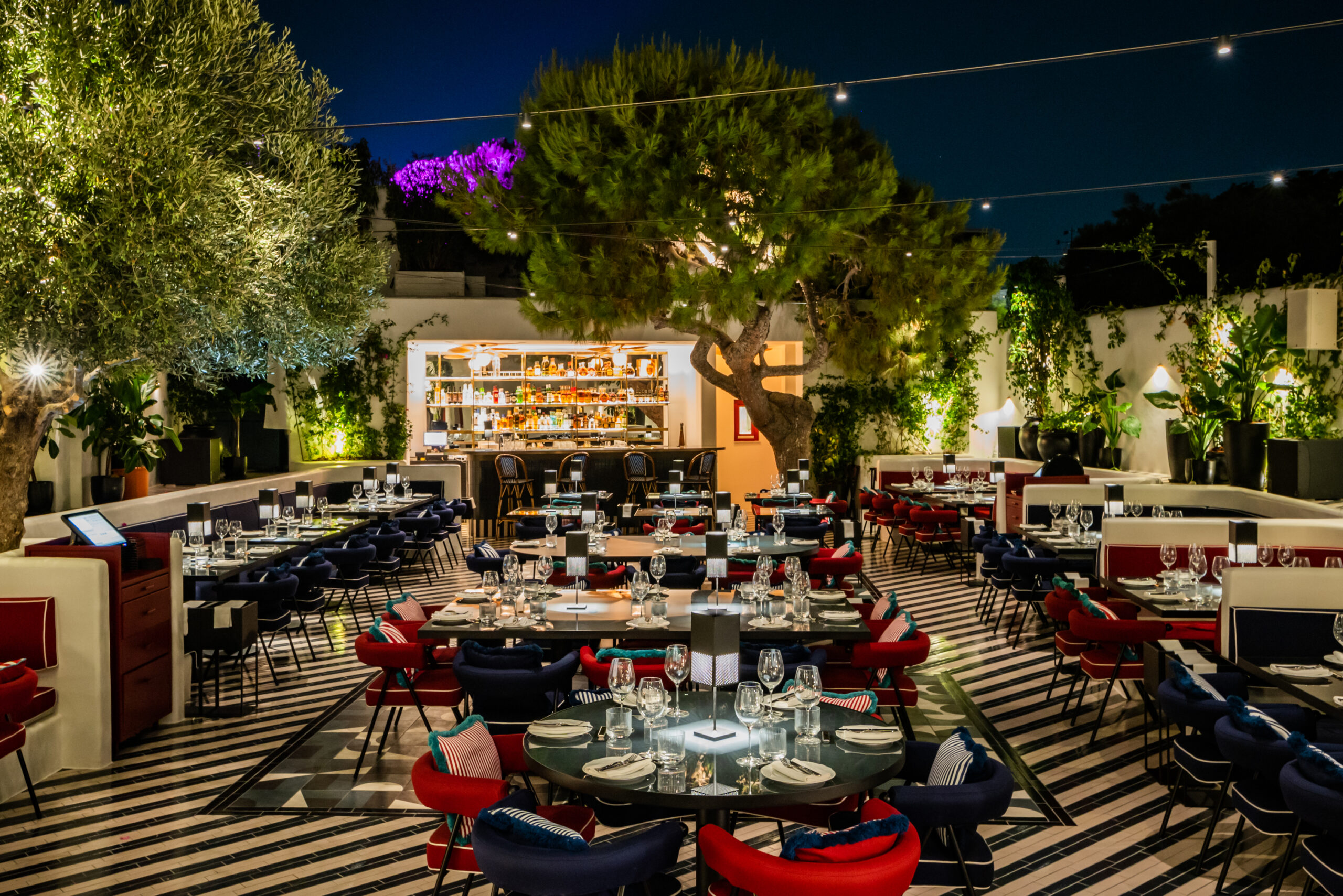 The a la carte menu features the finest ingredients the Mediterranean can provide – the scallop carpaccio with watermelon, cucumber, and citrus fruit dressing is refreshing and playful, while the Seabass is served with fresh urchin and Oscietra caviar. The octopus with potatoes, garlic purée and gremolata is hearty, as are the generous flavors of the charred eggplant with Florina peppers sauce, tahini, caper and mint. Special delicacies such as fresh lobster, caviar and jamon pata negra are menu highlights. Exceptional cocktails, well chosen wines and champagne perfectly accompany meals here. Once dinner and the cabaret show have ended, the entertainment continues into the night with vibrant parties featuring renowned DJs, as well as special events organised weekly.