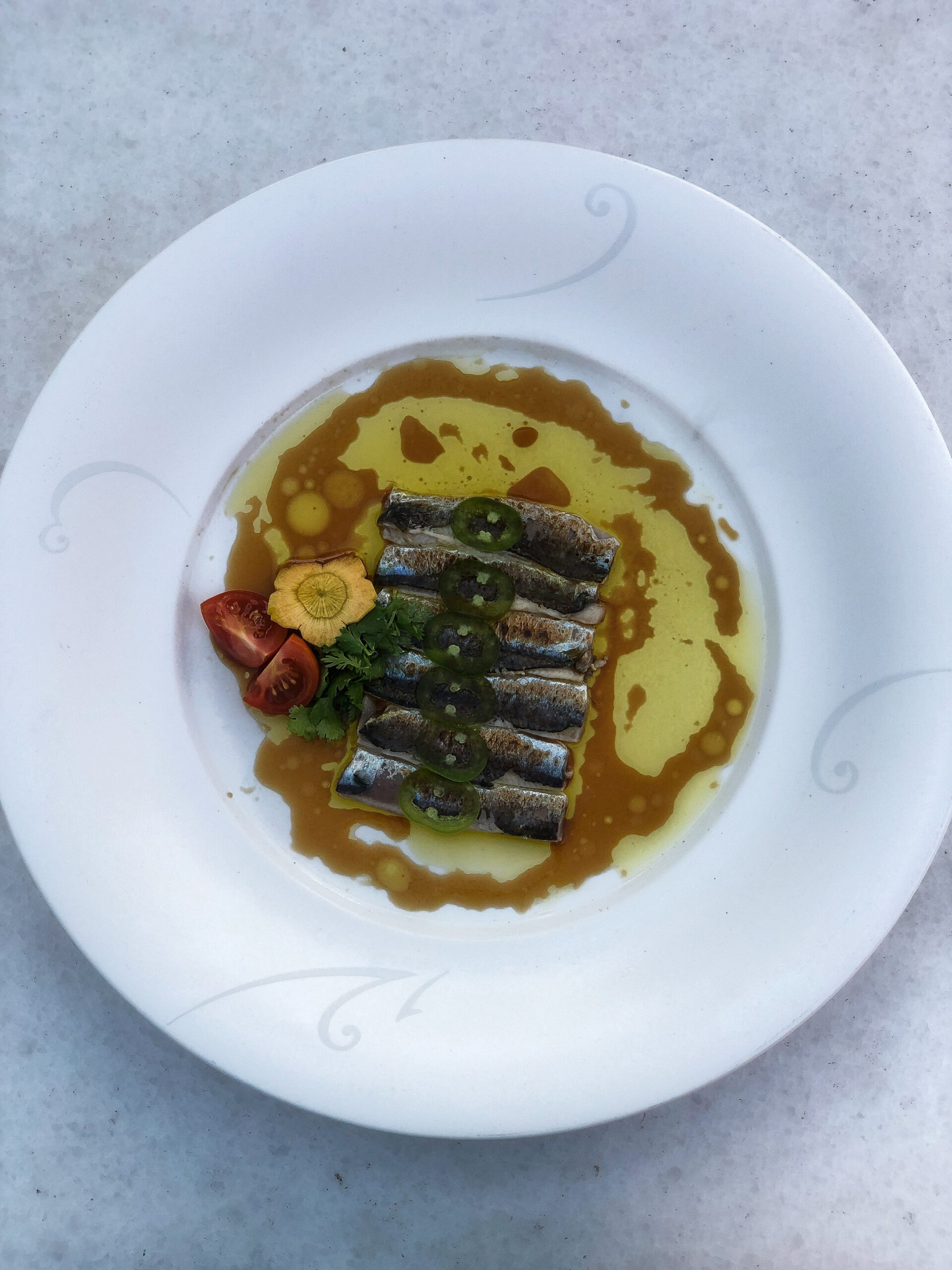 Intimate and romantic, the food unites Mediterranean flavors with French finesse in dishes such as ravioli with lobster, caramelised hazelnuts and thyme foam, risotto with Corfiot red lentils, or calamari and eel foam. Grilled scallops are served with hot foie gras and lemon sauce, celery root risotto is topped with black truffle and parmesan foam, and there is a delicate wagyu fillet with grilled taro and truffle