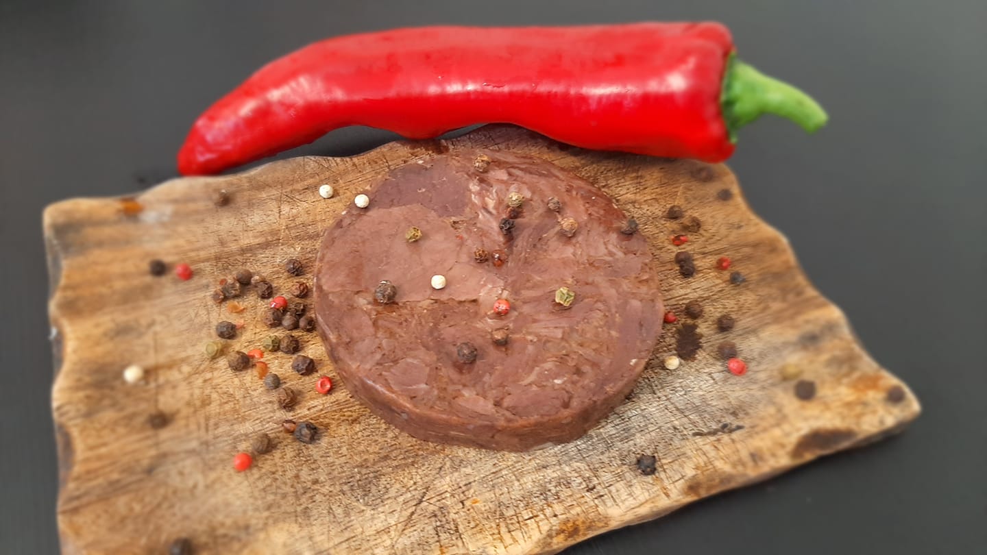 But buffaloes also give meat, not just milk. Buffalo meat has very little fat, about 2% and very little cholesterol. Less than beef, pork tenderloin or chicken. It’s a lean and healthy meat with a deep red colour, relatively few calories, rich in protein (>20%).