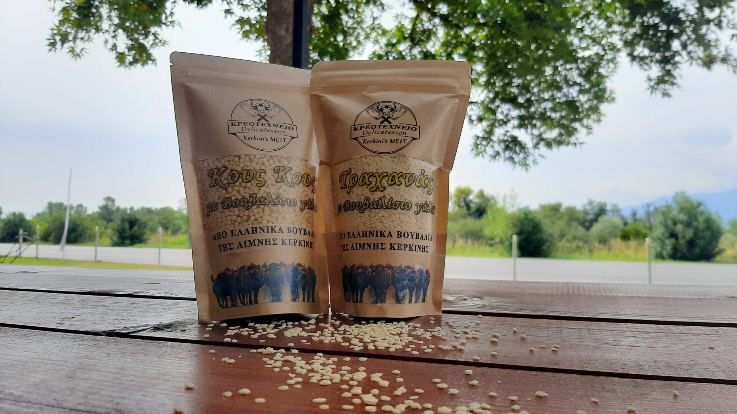 The two brothers run the small family business “Kerkini’s Meat” in Thrakiko, on the country road between N. Petritsio – Kilkis, and there you can find buffalo milk dairy and pasta products, as well as buffalo meat products, all made with respect to tradition, maintaining the highest hygiene standards. The available products include kavurma, salami, sujuk, spicy sausage, village sausage etc., pasta made with buffalo milk, as well as various buffalo meat cuts (steak, entrecote etc), from the farm’s cattle. “Kerkini’s Meat” is a delicatessen where you can also have a coffee or an ice cream – now that the weather is getting better – also made with buffalo milk.