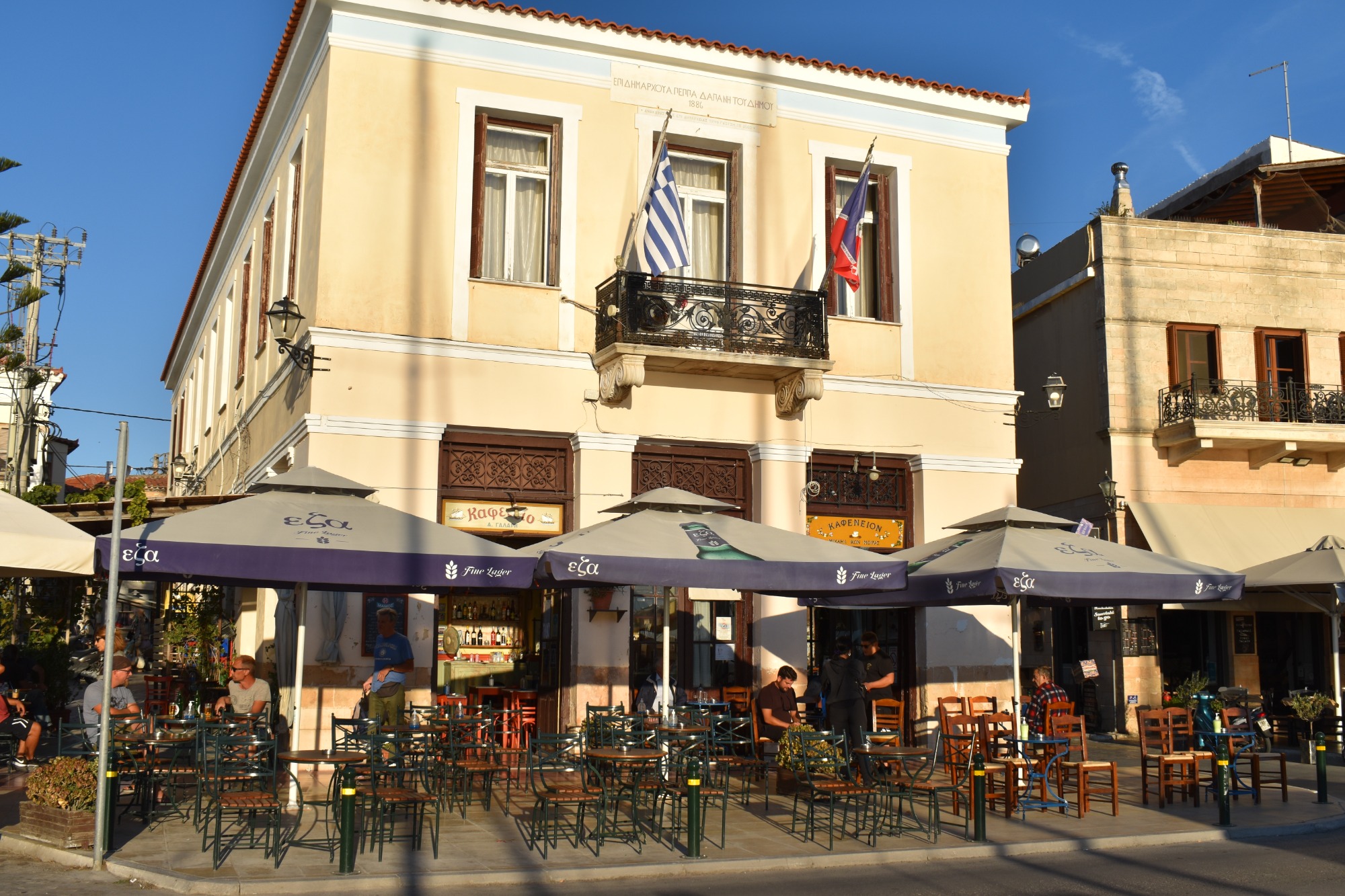 The traditional coffeeshops “Galaris” and “Moiras” on the promenade