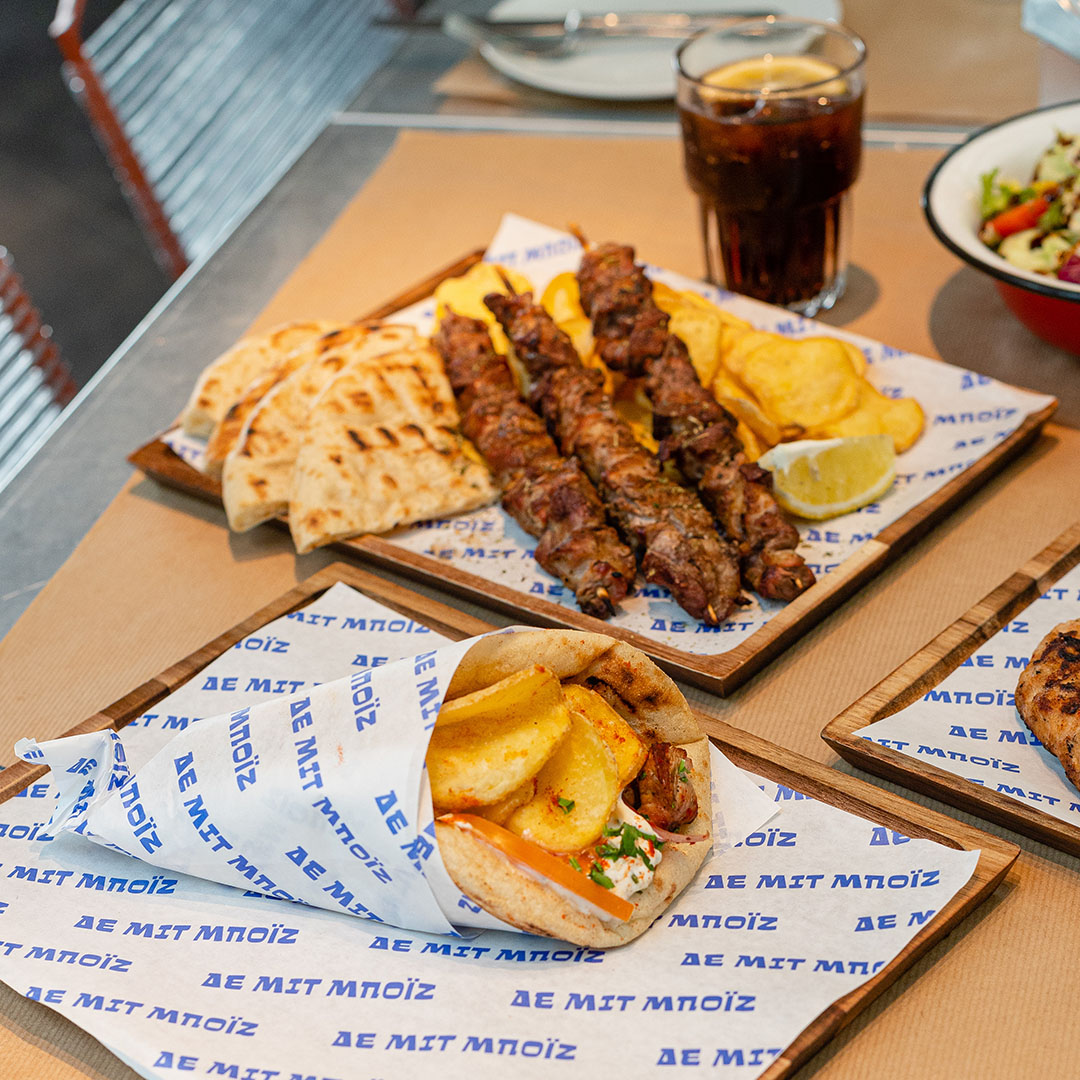 Across the way, authentic dishes from La Pasteria transport you to neighboring Italy. However, if you prefer homely and familiar flavours, give The Meat Boys (Δε Μιτ Μποϊζ ) a try – expect well-cooked skewers, crispy fried potatoes, and freshly cut salads.
