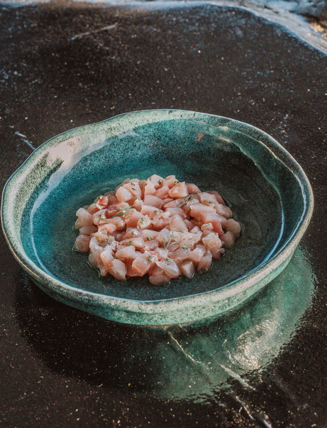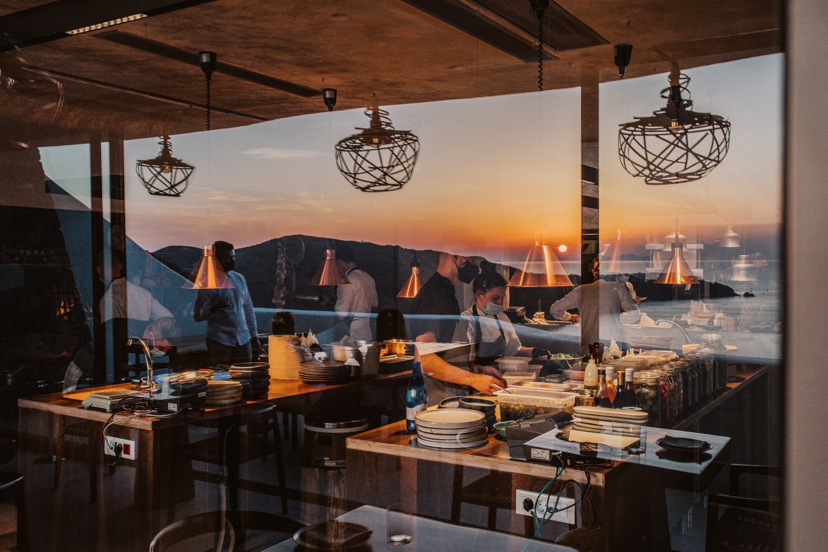 A few other details to mention (that are not exactly details) Vezenes insists in his nose-to-tail management of the meat – lamb, goat, poultry, and rare beef cuts of rare breeds – that are aged in a special dry aging chamber and acquire a complicated taste. The cuisine he represents, however, despite his Ionian Island influences, is perfectly suited to Santorini, as he notes, and includes the co-existence of the land and the sea; that’s why the menu is half seafood options and half meat dishes, “in a brutal version of cooking, in terms of honesty, cleanliness and simplicity” he adds to conclude that in this kitchen everything can co-exist. We are, after all, on an island with overflowing energy; “the volcano underneath us, then the sea, and at 300 metres altitude, us. And cooking is somewhere in between.”