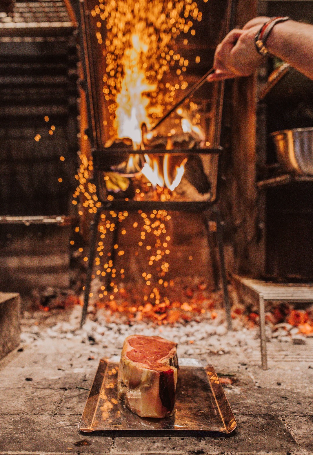 “If I’m asked what I’m trying to express and show through my new project, the answer is to create the first open fire of the new generation which will however be based on hundred-year-old thoughts and techniques,” Vezenes continues, explaining that olive wood and vine, so widely used and tightly associated with Greece, are going to be the main fuel he will be using for his grill, with the addition of other fragrant wood.