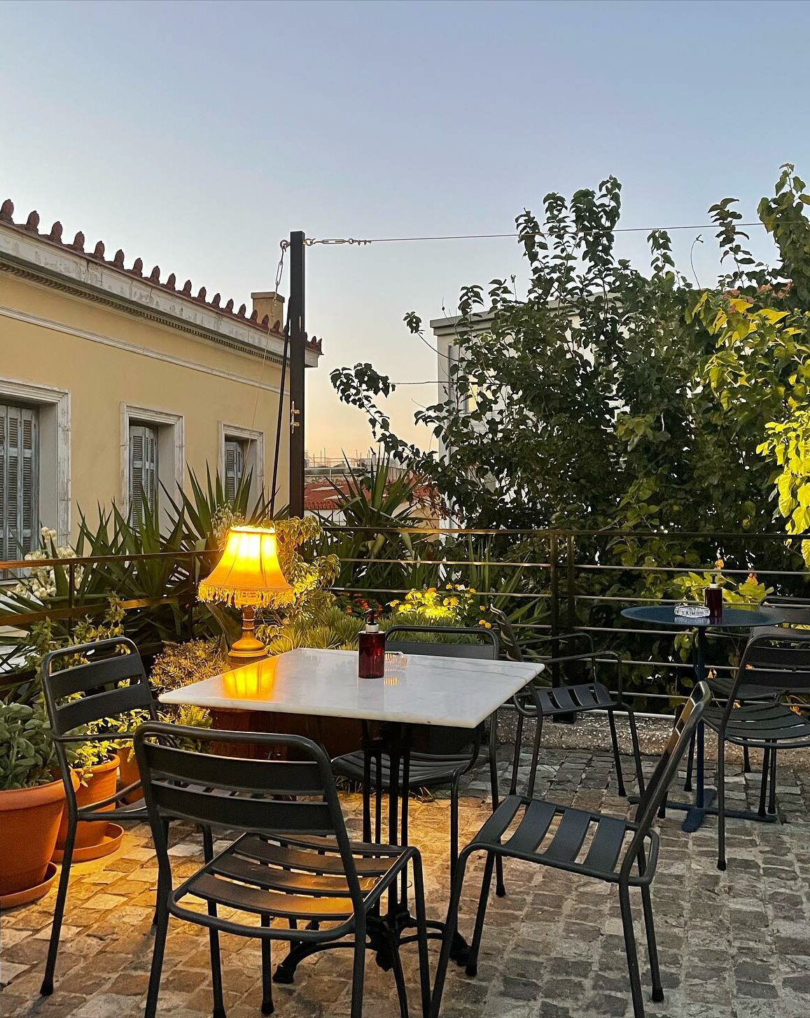 Open from the morning for coffee and breakfast, the café comes alive at dusk as the breeze brushes through the mulberry trees and the cobbles glow with the reflected yellow light of the Parthenon. Rather than the centre of a busy, modern metropolis, the atmosphere reminds of an island chora, a very Greek scene as old as the streets themselves. The menu, though, is more modern with influences from global gastronomy; terrific Tabbouleh is spruced up with seven spices, squid is spiked with lime and chili, and unforgettable meatballs are served with a black garlic mayonnaise. Served as small plates alongside Greek beers, wines, and spirits, the scene is at once nostalgic and contemporary, half- urban yet half-rural, a place that embraces the present day with a wistful eye on the past.