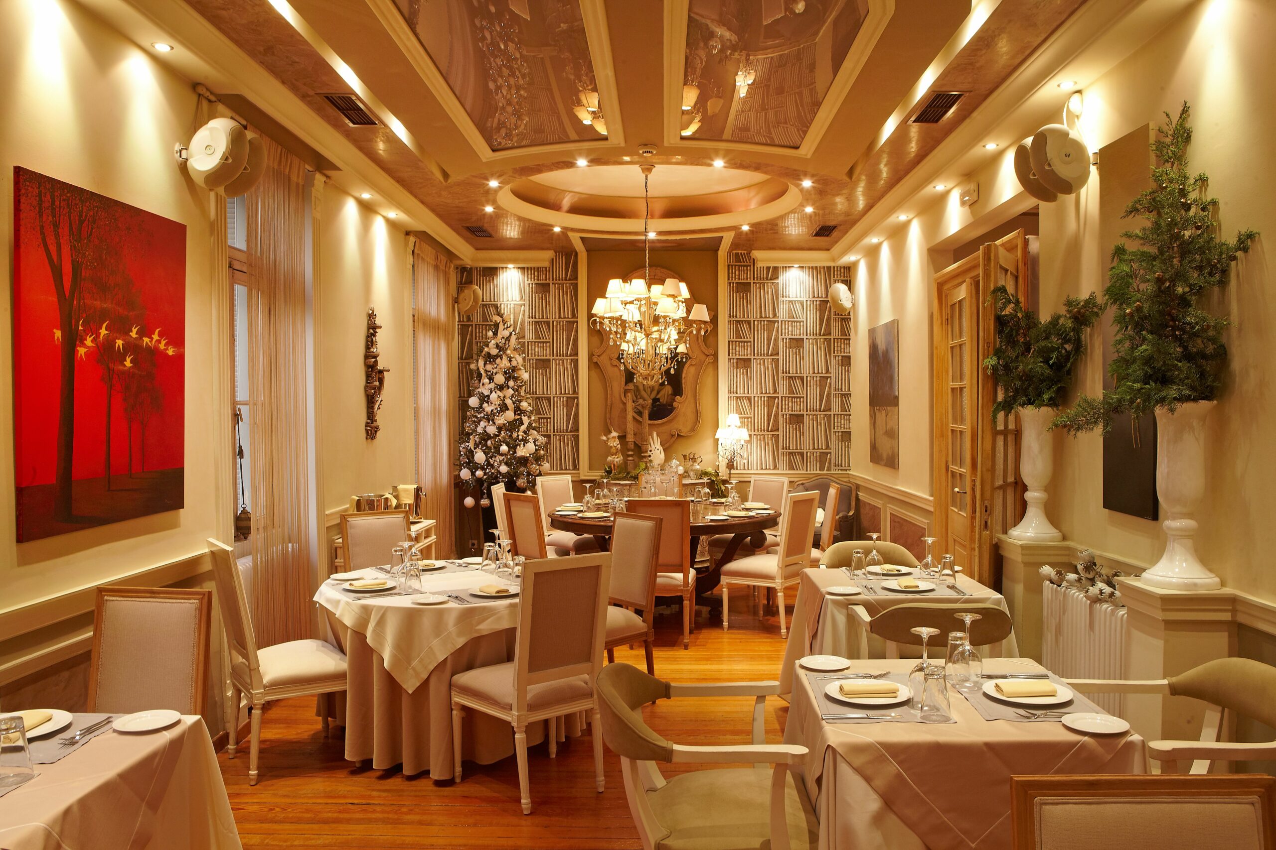 The interior’s earth-toned colours and delightful Christmas decorations at Simul create a warm festive atmosphere in the heart of the Kolonaki district, where Nikos Thomas and Manolis Sarris keep the comfort food flag flying. The aged graviera cheese with fermented blueberry and truffle is one of the New Year’s Eve menu’s appetiser highlights, while, in the main dishes category, the red mullet with apple jam, raisins, onion and sherry vinegar is definitely noteworthy. The six-course meal is priced €70 per person, including a welcome drink, with an additional cost of €25 for wine pairing.
