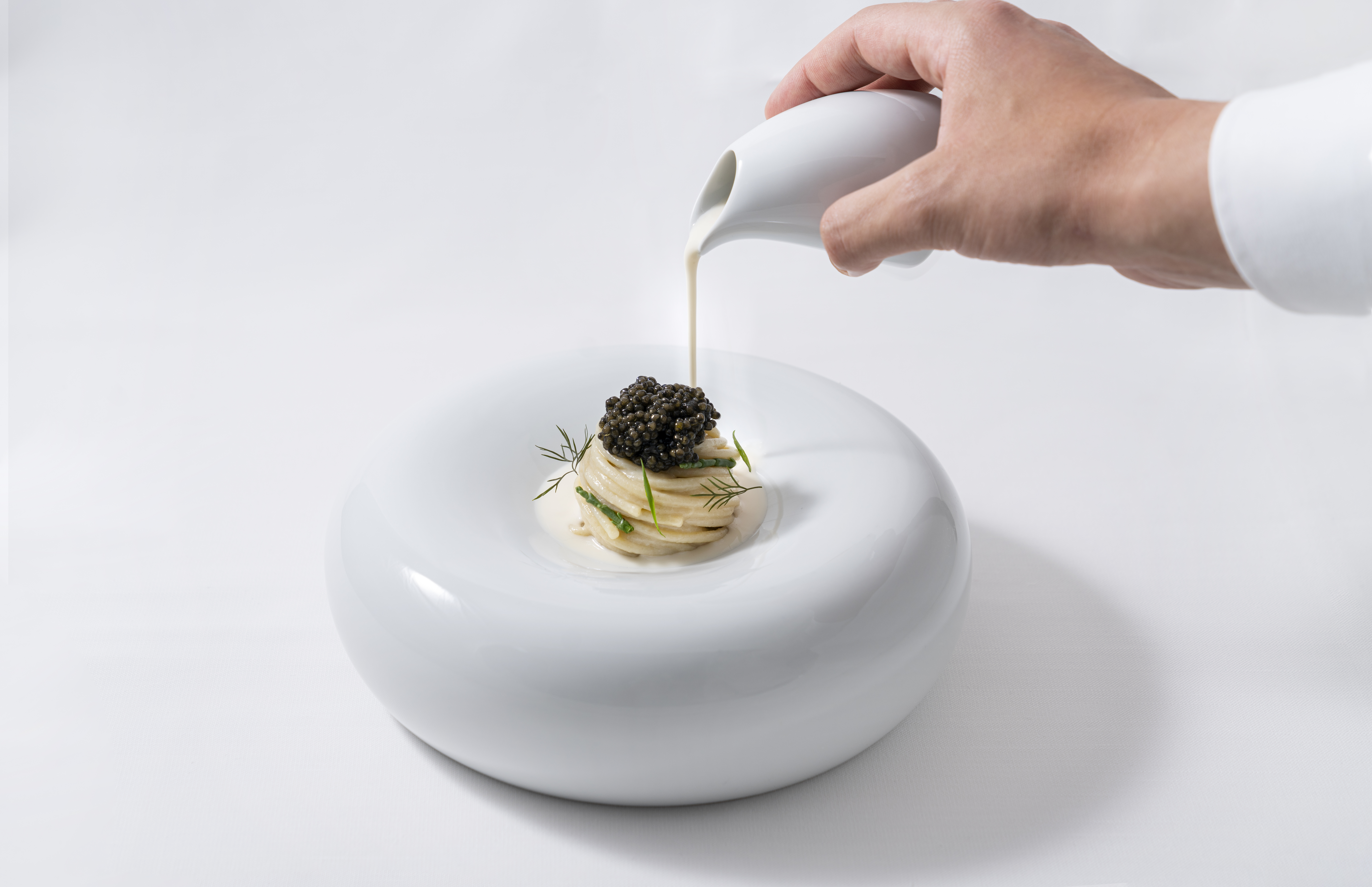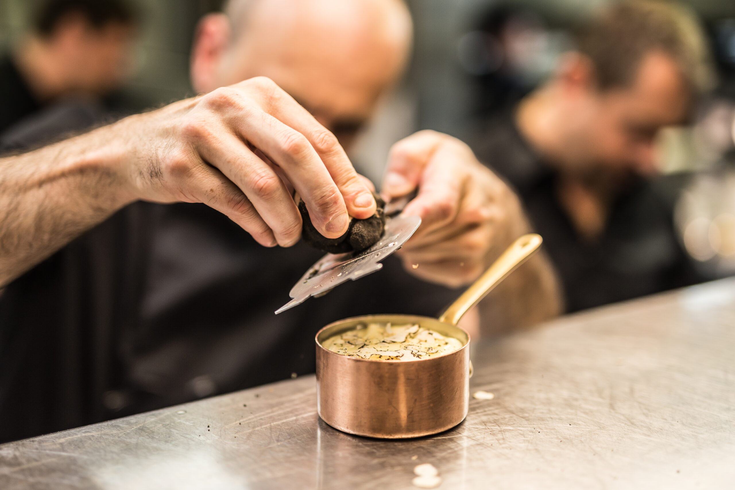 This chef, who insists on highlighting the rich flavour and aromas of top-quality ingredients, avoids any form of extravagance while pursuing an innovative path as he experiments to bring forth the full potential of each dish. He applies processing techniques associated with meat to fish and seafood for a personal philosophy promising to delight diners.