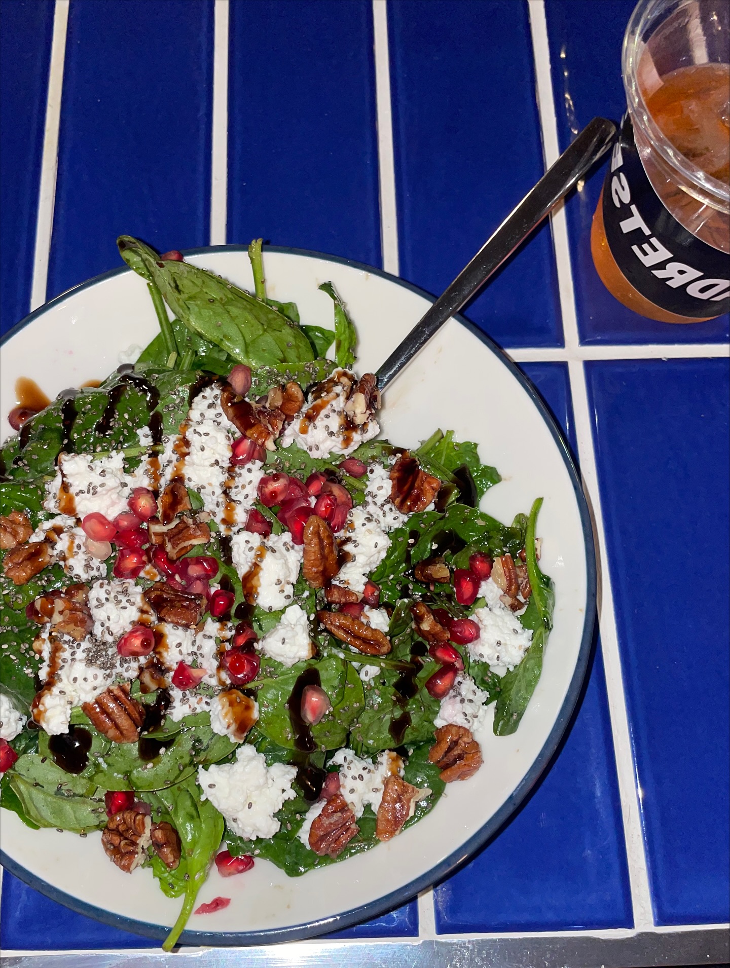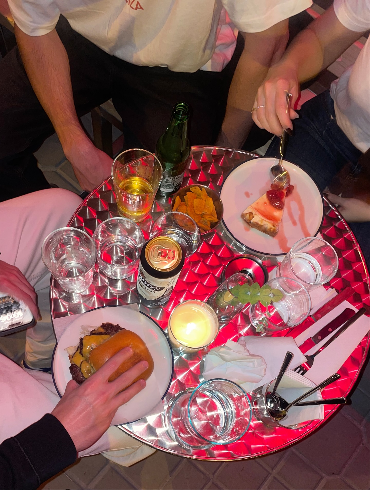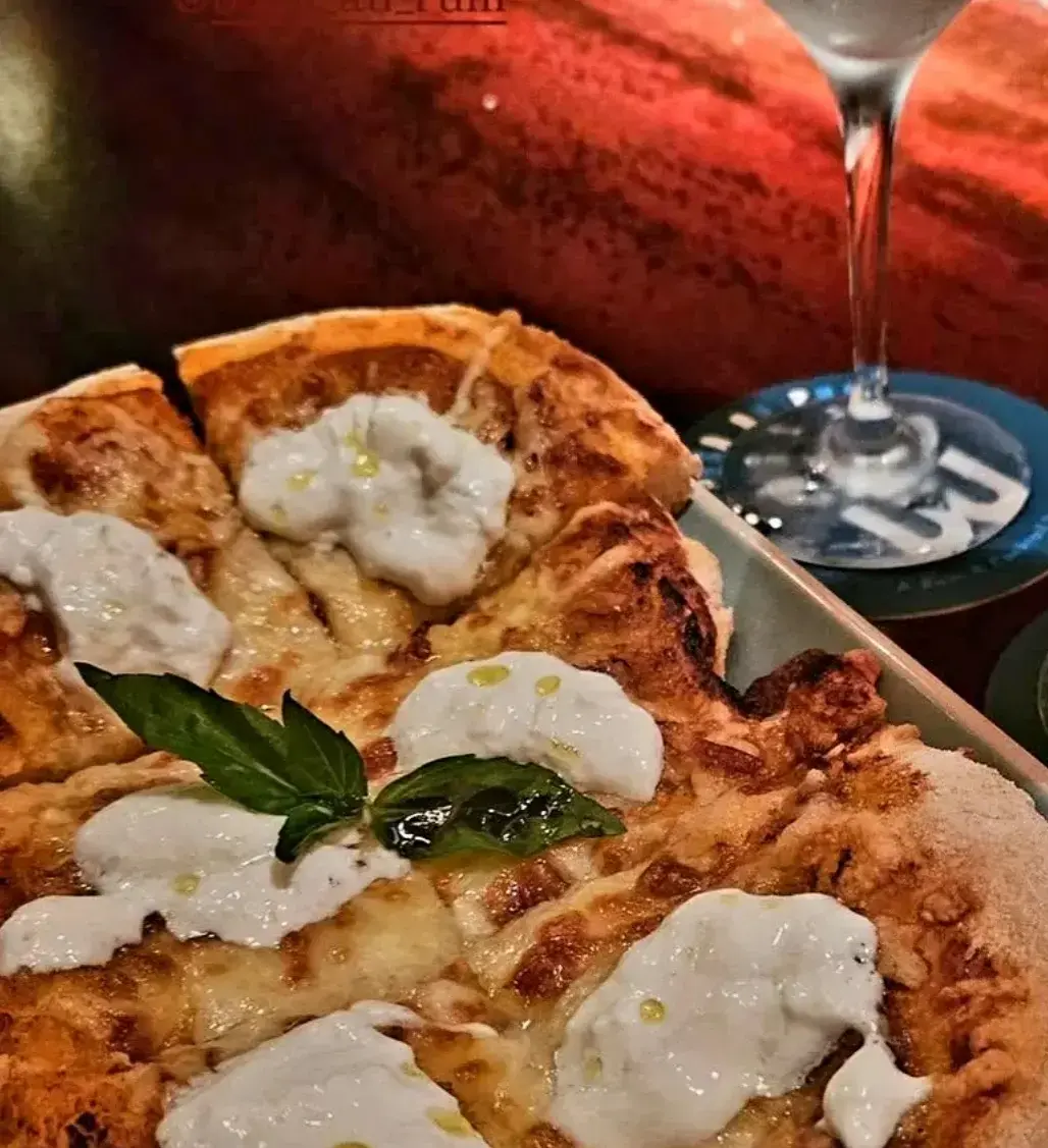 Pizza determines both the menu and the tempo. The kitchen turns out New York–style pies, including the ’nduja pizza with scamorza and honey, alongside pasta such as mezzi rigatoni with pistachio pesto. Orders are placed early and repeated later, often as the music takes over the room. The bar fills quickly and stays active well into the night. Cocktails follow familiar forms: the Burnout Margarita, built with fruit and chili, is ordered consistently, while a classic Negroni appears once the table settles into food.