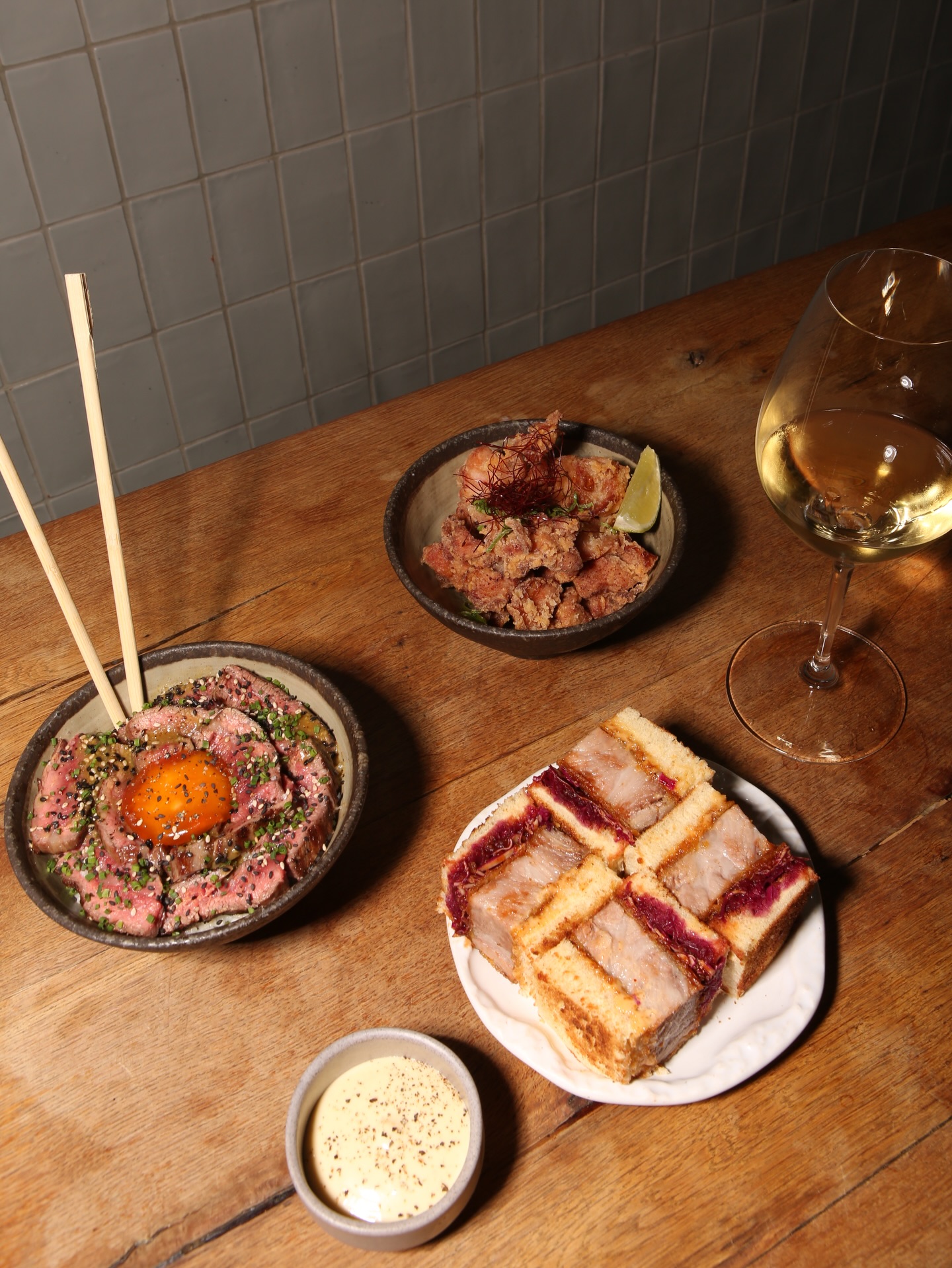 The reference to a Japanese cultural concept remains secondary to how the bar actually functions. Set on a quiet pedestrian street, the room is compact and dark-toned, with a low ceiling and a custom-built bar that concentrates activity rather than dispersing it. The drinks list works through collaborations and favors Japanese spirits, tea, and careful ice work, with highballs and Margaritas reinterpreted through ingredients such as shiso, oolong, and fruit cordials. Food looks toward Japan without imitation, including wagyu sliders, chicken karaage, and gyoza filled with shrimp and pork. Music leans electronic, without fixing itself to a single register.
