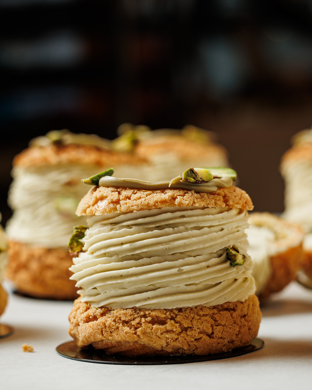 Sunday breakfast is served here from 10:00 to 13:00, after which regular lunch service begins. White tablecloths replace the usual setup and the open kitchen counter fills with brioche loaves, country bread, tarts, metal egg cups and whole honeycomb. The menu, created by chef Lukas Mieler, focuses on mostly handmade preparations: soft-boiled free-range eggs, house-cured bacon, a French-style omelet served with lettuce heart, sheep’s yogurt from Strouga on Evripidou with honeycomb, and brioche with butter and fig–bitter almond jam. Drinks include grapefruit, pomegranate or orange juice, pét-nat and a rotating cocktail such as an Americano. Austrian references appear in a schnitzel served in potato bread, ciabatta with ham, and a clear beef broth for dipping. A beef consommé with thin crepe strips is also offered, especially during colder months.