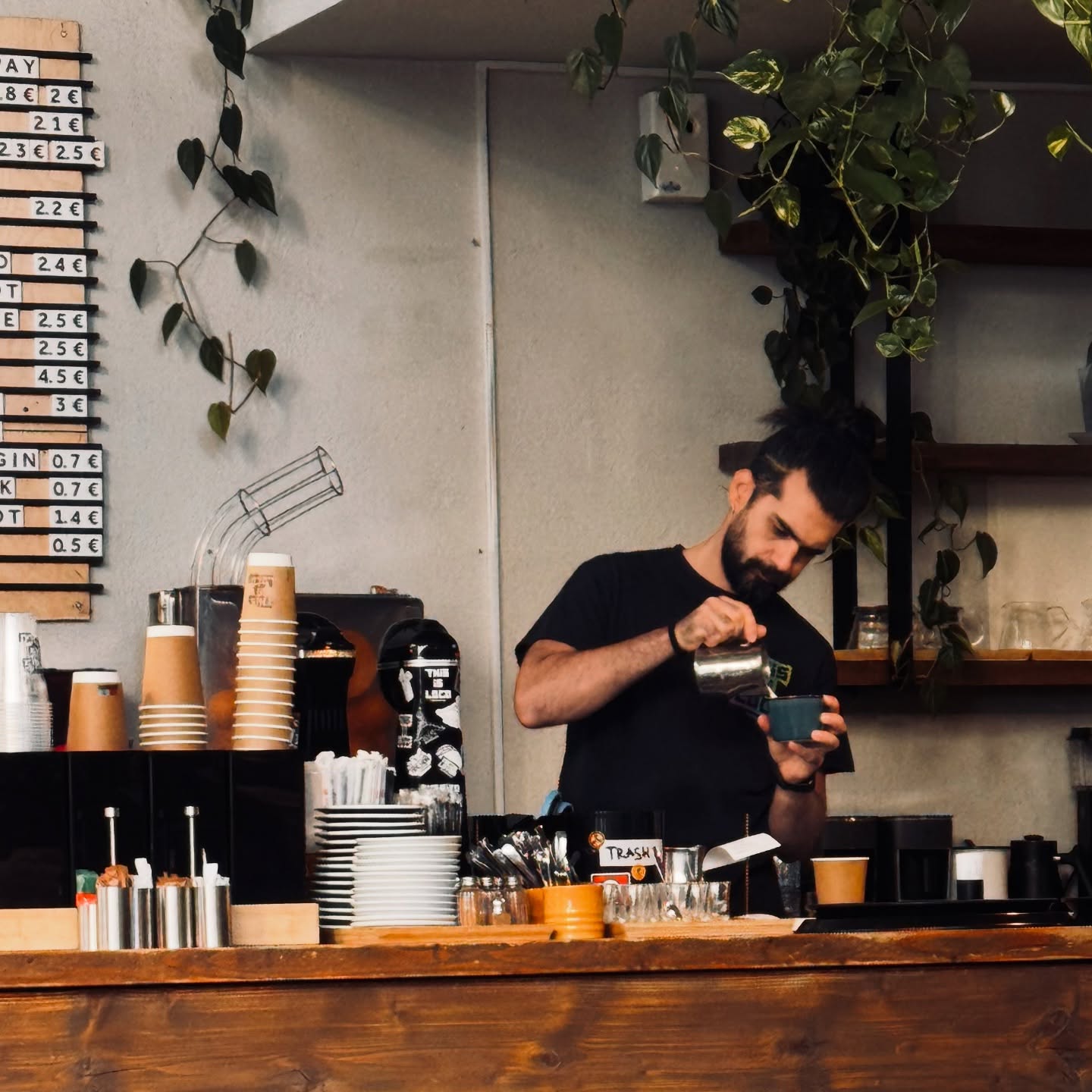 At Picky, the brunch experience centres on specialty-coffee precision and fresh, thoughtful plates in a leafy courtyard in the heart of Psyrri. The team sources quality beans (from Guatemala, Colombia and Brazil) and pairs them with dishes such as smoked-salmon eggs Benedict or a tiramisu pancake layered with mascarpone and coffee syrup. Bowls of granola, creamy yogurt or innovative smoothie blends carry the health-conscious tone, while the outdoor yard offers a relaxed but stylish setting for mid-morning indulgence.