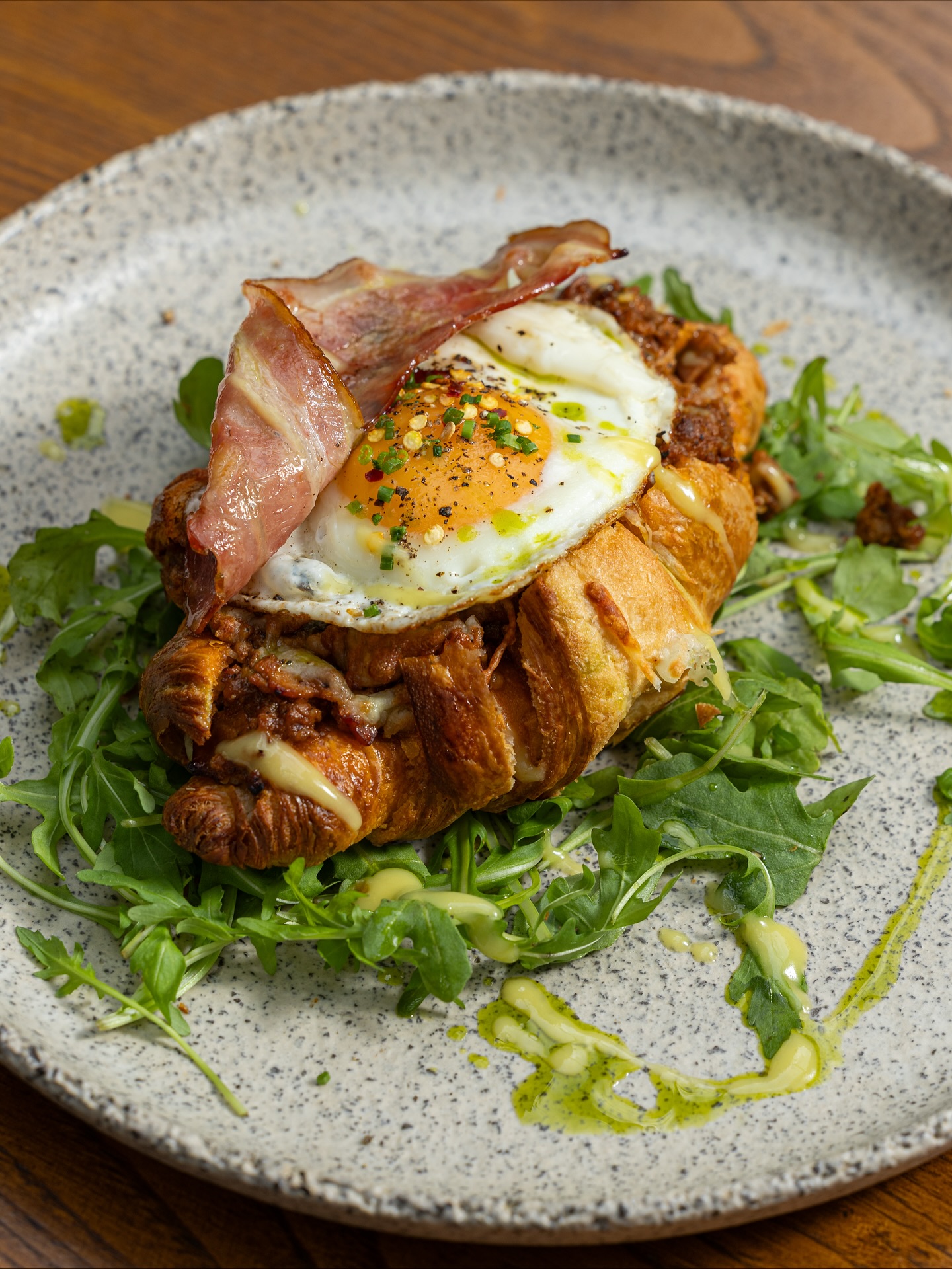 A nod to Fellini’s cinematic world, Zampanó in Psyrri channels retro elegance with warm lighting, vintage details, and jazz spinning on vinyl. The brunch menu blends classic European elements with Greek flavors: strapatsada, fluffy scrambled eggs folded with feta and fresh tomatoes, is served on rustic sourdough, while a croque madame combines buttery brioche, melted graviera, and crisp bacon. Classic cocktails like mimosas and Bloody Marys complete the leisurely, old-world brunch experience.