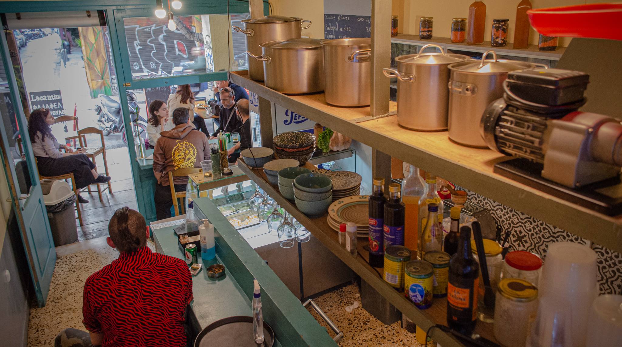 Lacantina, a quaint eatery established in 2016 in Exarcheia, is inspired by the owner’s travels in Asia and Europe. A canteen that doubles as a compact restaurant, it speciallizes in ethnic street food, and takes one on a culinary journey from Lebanon to India. Highlights include uniquely prepared falafel with fava beans, as made in Egypt, and unconventional salads like that with mung beans with goat cheese and balsamic dressing. The bestseller, the Chicken Curry Wrap, is a must-try, with chicken cooked in coconut milk with mushrooms and peppers. Also, the daily selection of seven velvety soups, ranging from classic celery root to chestnut soup with cognac, offer feel-good warmth on a cold day.