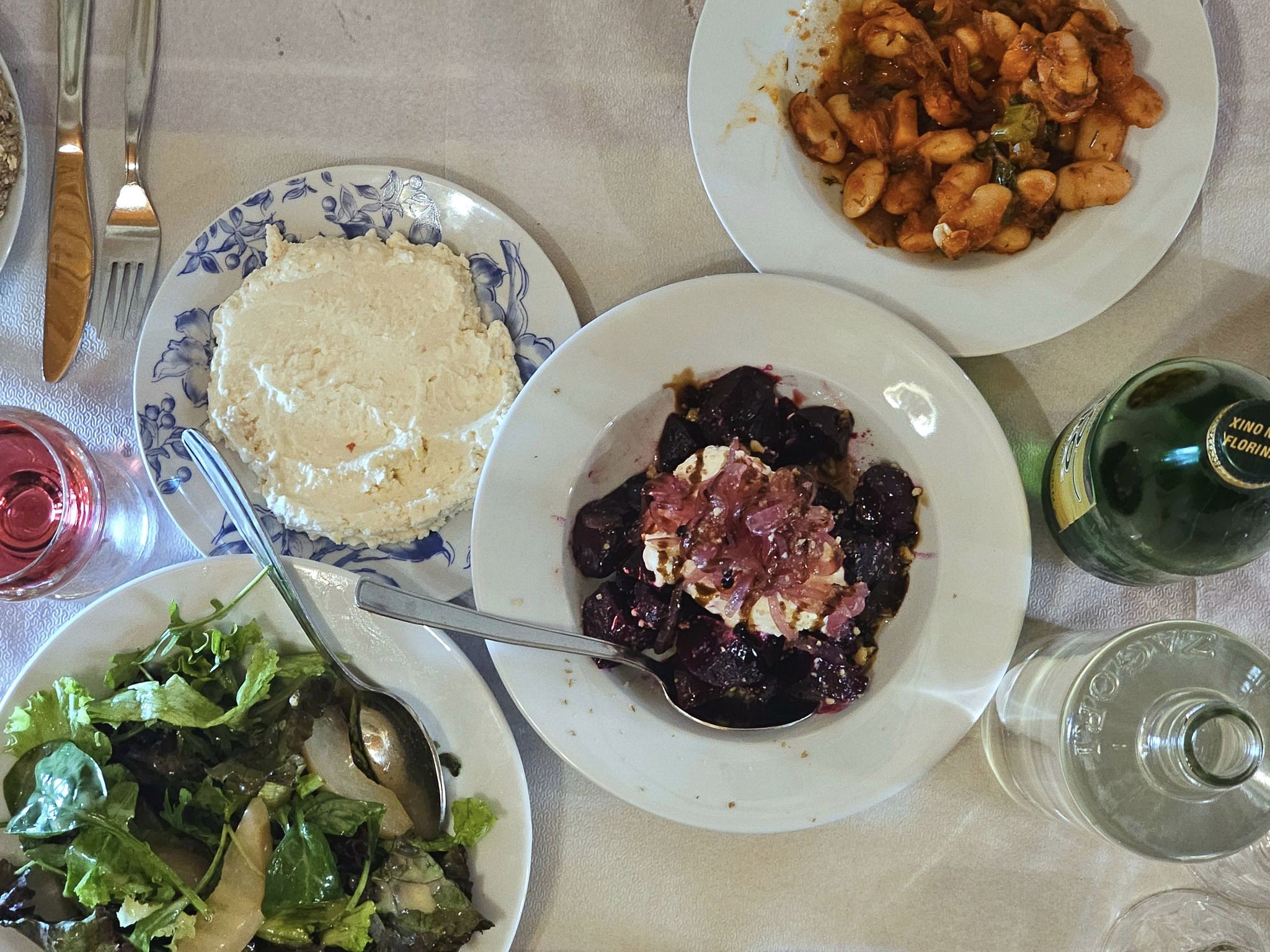 Pharaoh’s defiant modern Greekness and back-to-roots approach embrace the national tradition with open arms. It blazes out with a dedication to traditional Greek cuisine, presented with a modern narrative that respects the integrity of its ingredients. It’s a must-visit for those seeking a heartwarming taste of Greece combined with cool minimalism, quirky decor, and excellent DJ sets with vinyl records. The essence of Pharaoh’s menu is an homage to Cretan “cucina povera”. This is a philosophy of using minimal, high-quality ingredients to create dishes that are simple yet profoundly flavorful. Chef Papoutsakis certainly draws inspiration from his Cretan roots. He offers a menu that pairs the island’s culinary traditions with his heartful and sophisticated touch. The wine list focuses on minimal intervention wines, sourced from organic or biodynamic grapes, to complement the meal. Ingredients are sourced directly from small Greek producers, ensuring freshness and quality in every dish.