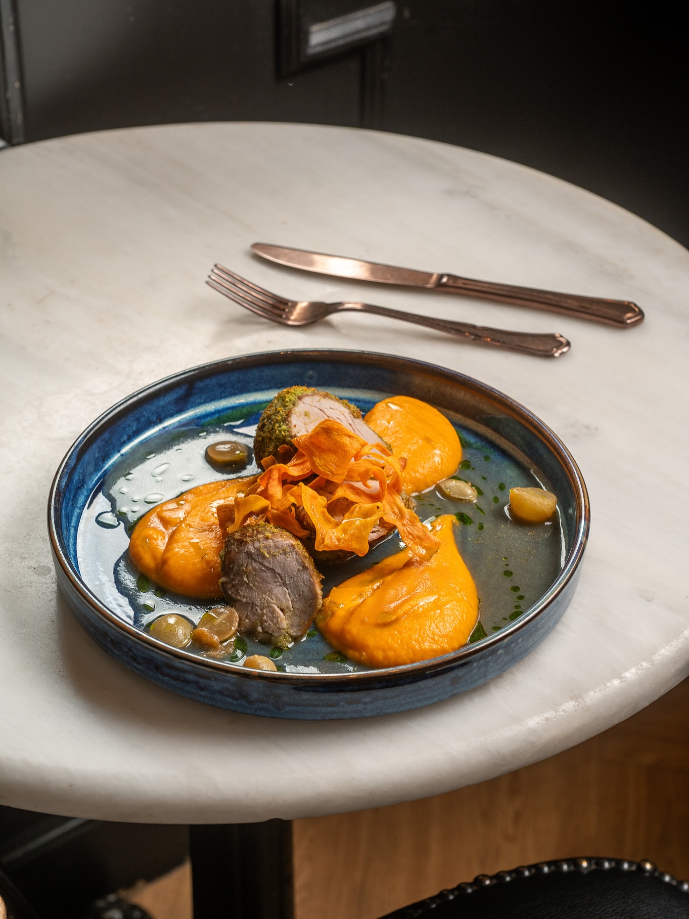 Specializing in farm-to-table meats sourced from its own farm, this rustic eatery delivers dishes like slow-cooked lamb, grilled pork chops, and homemade sausages. Earthy tones and wooden accents enhance the warm atmosphere, complemented by organic wines.