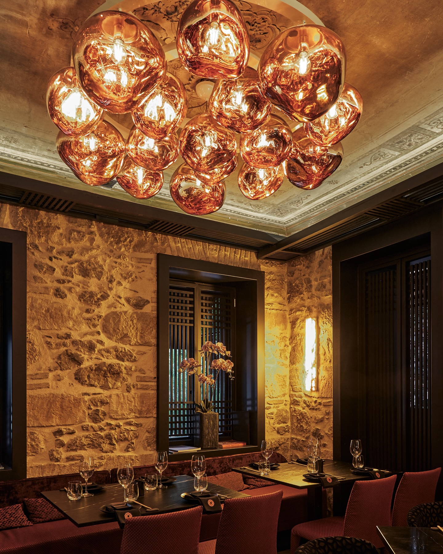 Tokyo’s izakaya culture comes alive in this contemporary space adorned with Japanese art and ambient lighting. Guests can savor sushi platters, ramen bowls, and tempura dishes, paired with Japanese whiskies and sake for an authentic experience.