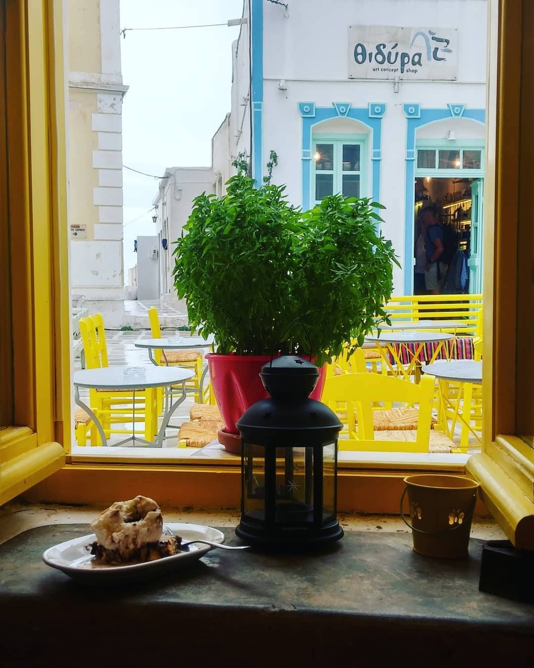 Nestled in Chora’s heart, this quaint traditional café offers a warm welcome and a serene ambiance at St. Athanasios Square. Enjoy a glass of ouzo while admiring the neoclassical façade of the town hall and church.
