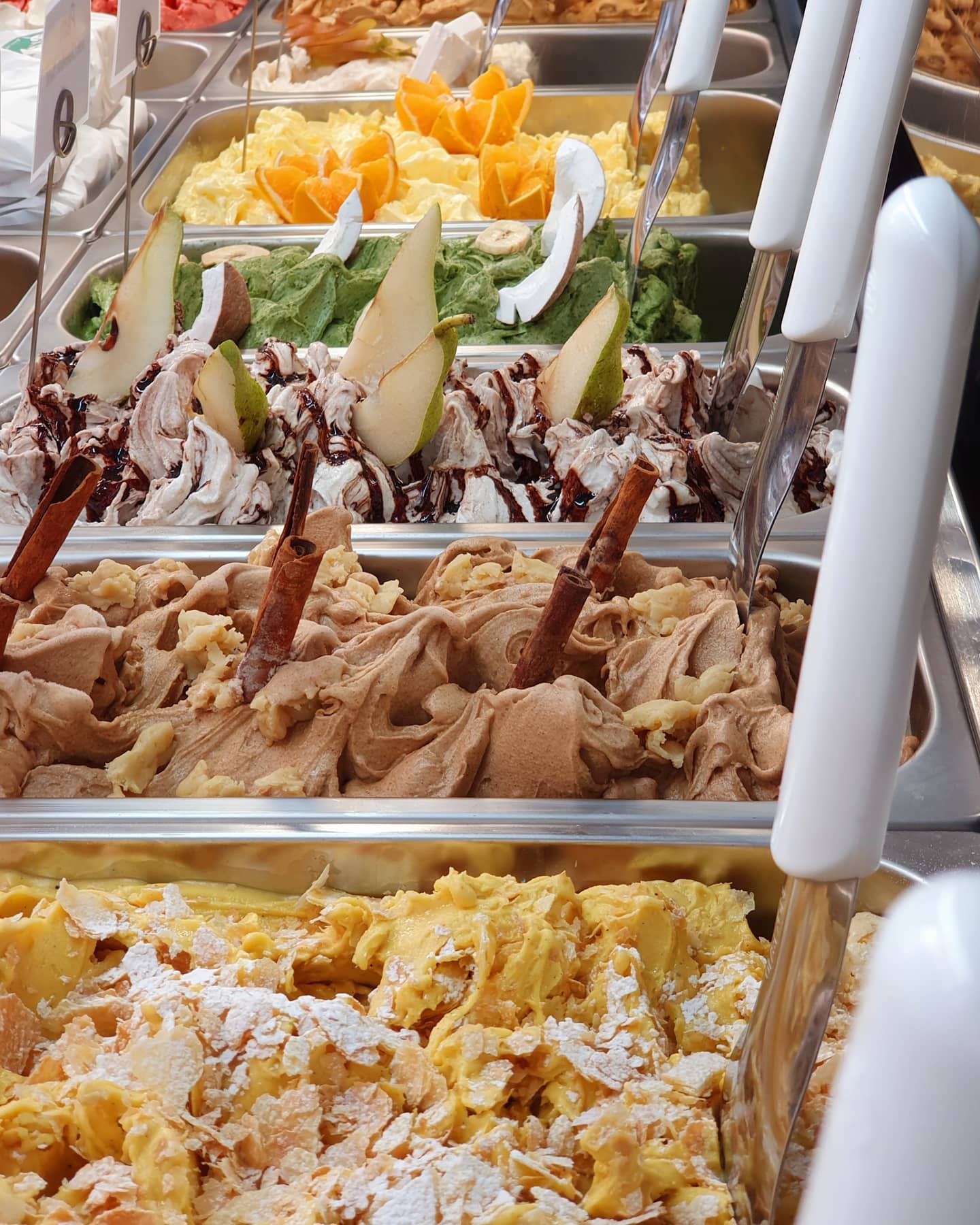 The ice creams here, then, are made with soya, oat, rice and almond milk, all noted on the tags, including whether the selections are gluten-free or not. The range of flavours, close to twenty in all, have nothing to envy of traditional ice creams. You will find chocolate, vanilla, hazelnut and plenty more. I tried the lemon cheesecake and apple pie flavours. Both were very tasty but did lack the heavy body most of us have become accustomed to in ice creams. This is natural given the fact that these ice creams are completely free of any animal ingredients. As can be imagined, I did not restrict myself to just the two initial flavours. My first two scoops gradually vanished while I asked questions and the polite German couple responded offering details. As a follow-up order, I asked for the chocolate with chili flavour, which left a pleasantly spicy aftertaste, as well as the tiramisu, rich in espresso coffee flavour.