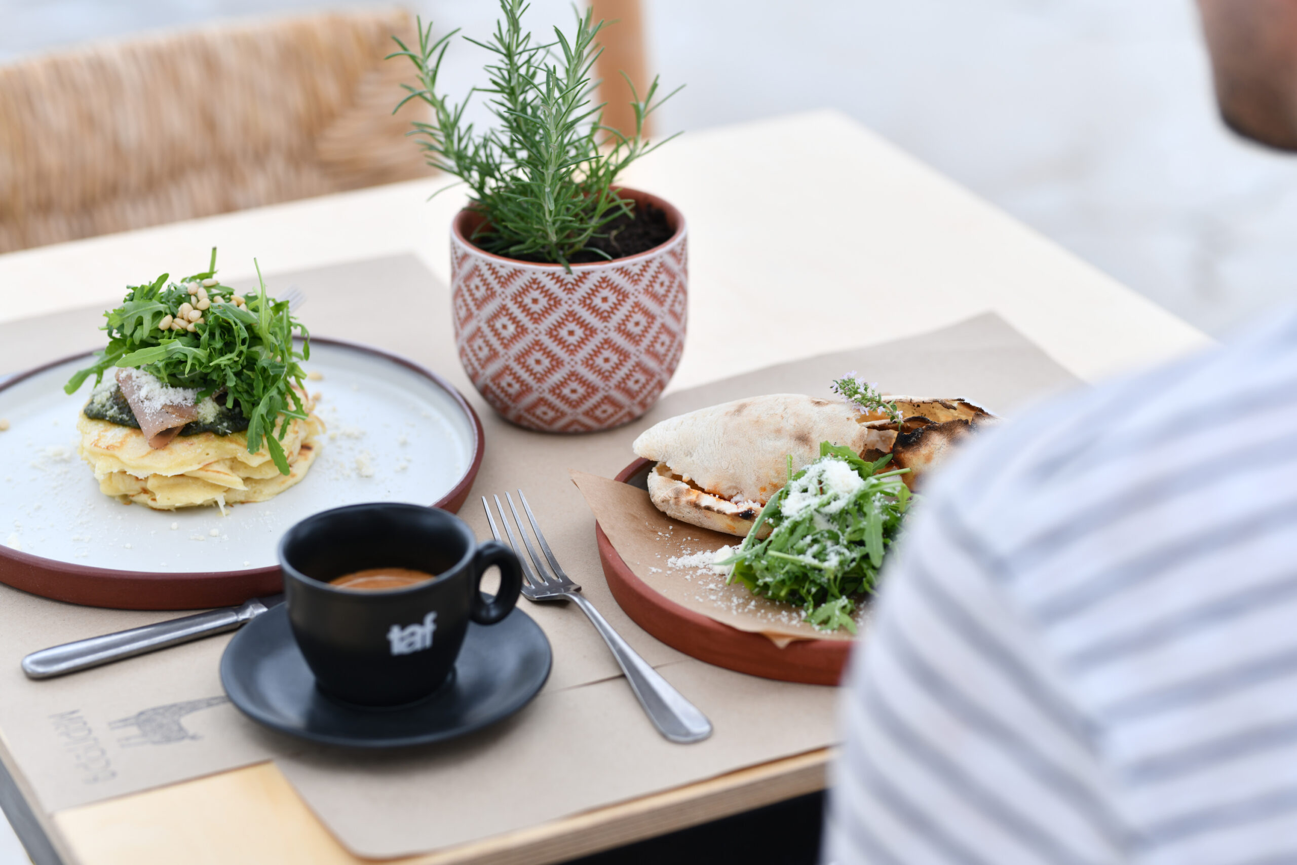 Last year was definitely a peculiar and challenging one, but the lack of tourism activity did provide the Margiora team with the opportunity to identify and address shortcomings. As a result, the place, as of this season, is serving from the morning hours, basing its offerings on Cycladic goods and coffee, supplied by Taf, a Greek roastery. The spot serves handmade pies, made daily. I loved the pumpkin pie with the crisp carob pastry and courgette flowers, the generously portioned kagianas (scrambled eggs) with Tinos louza (cured meat), as well as the delicious sandwich with Mykonos sausage and eggs.