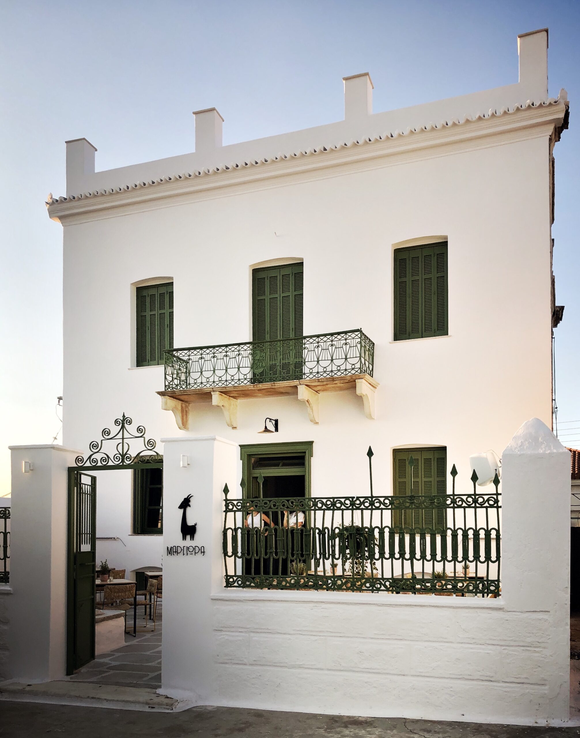 Margiora is housed at an old stately building dating back to 1866. The business is managed by Fontas Dialismas, who hails from Kythnos. The specific property, whose ownership has run through the family, stretches back to his great-grandmother Margiora, hence the business name, who also owned surrounding buildings at the square, which, in older times, housed a doctor’s practice and an inn.