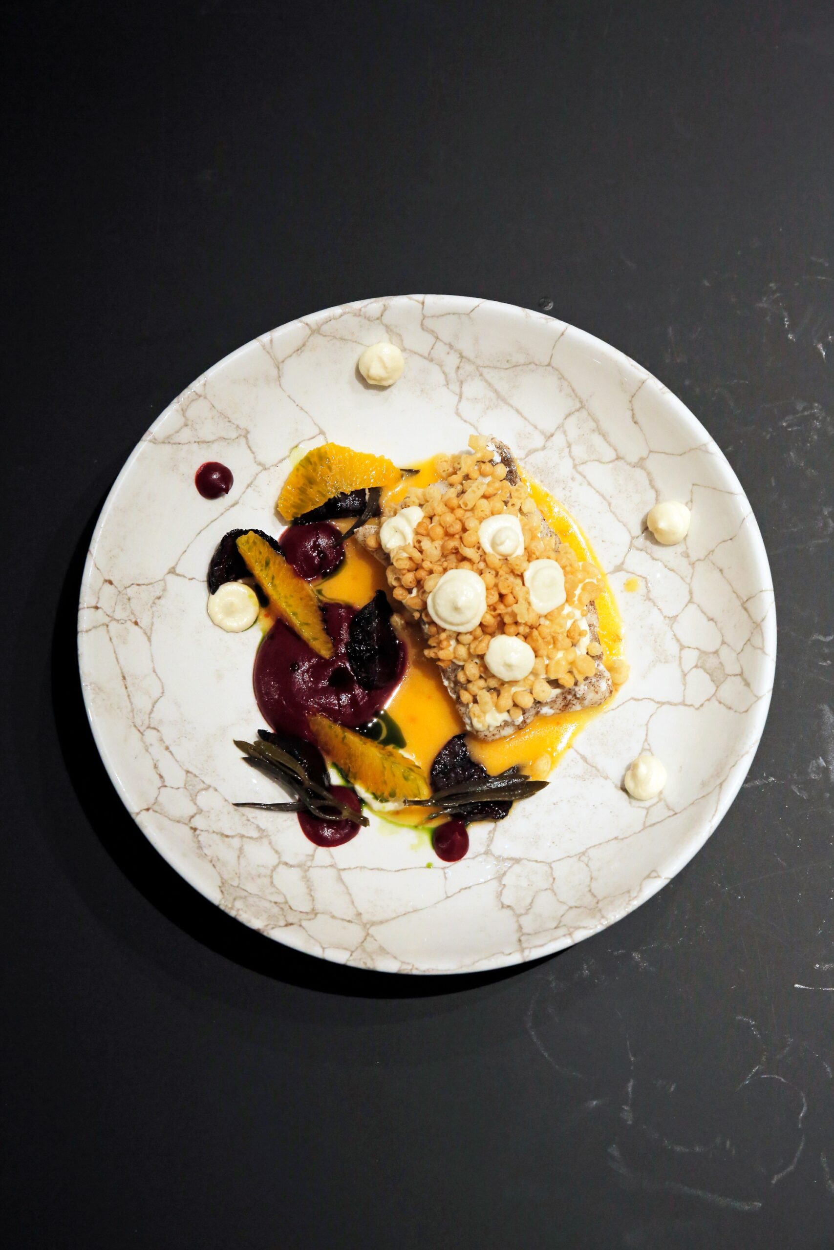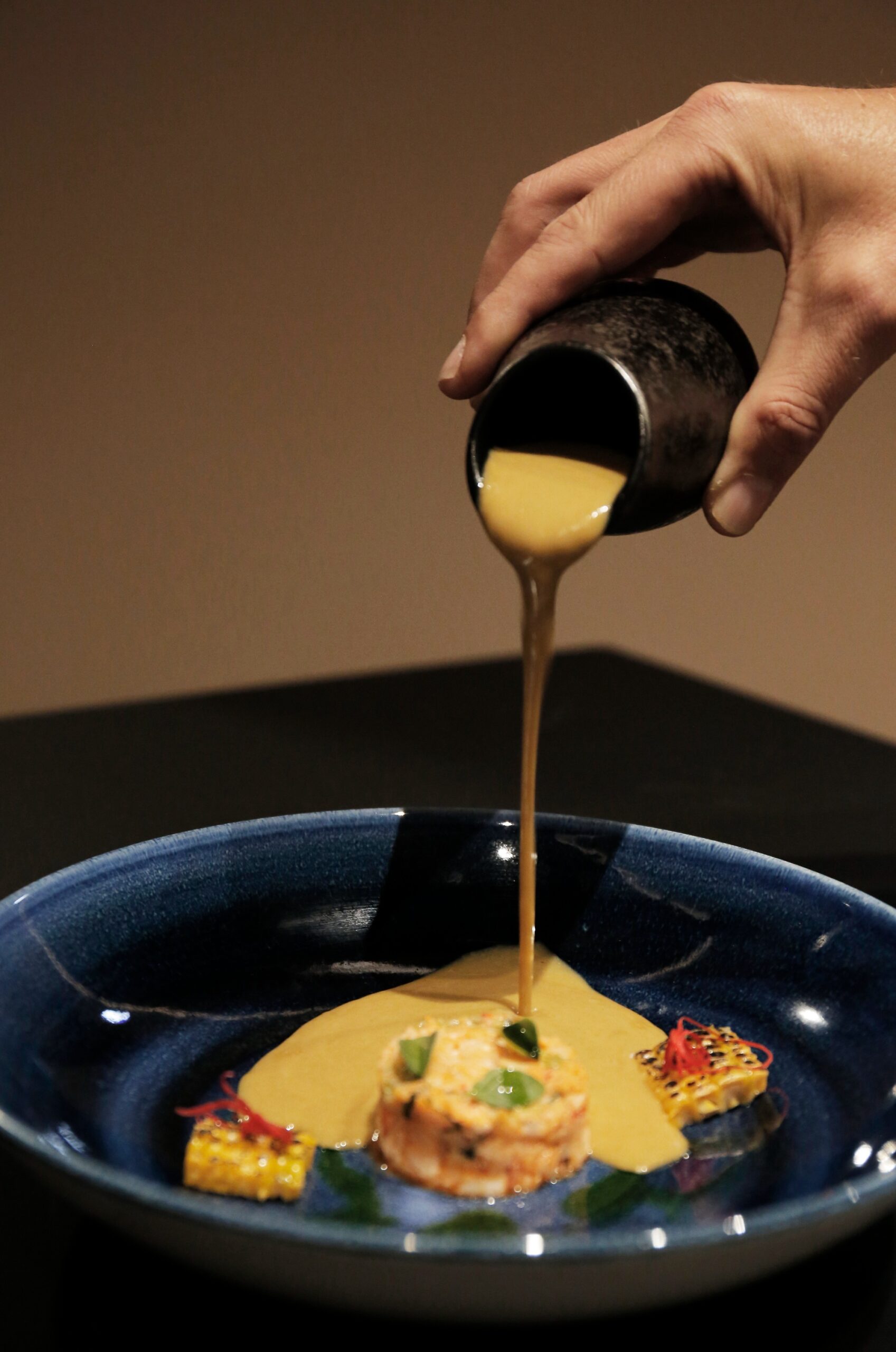 In an international line, the dishes “Lobster veloute soup flavored with ginger, chives, onion and accompanied by roasted corn, the dish “Handmade cannelloni stuffed with crab, shrimp, spinach and shrimp bisque-sauce béchamel flavored with Moschato d’Asti and the modern raw: Sea bass carpaccio with sea urchin, tarama mousse, tomato and olive oil kernel with yuzu, tuna tartare with watermelon, mint sauce, and rice chips. Greek-inspired “Egg lemon fricassee grouper with saltines and zucchini” and an interesting Mediterranean-inspired dish is the “Cod confit with pearl turmeric pearls, white taramas, roasted beetroot and beetroot mousse and orange sauce.