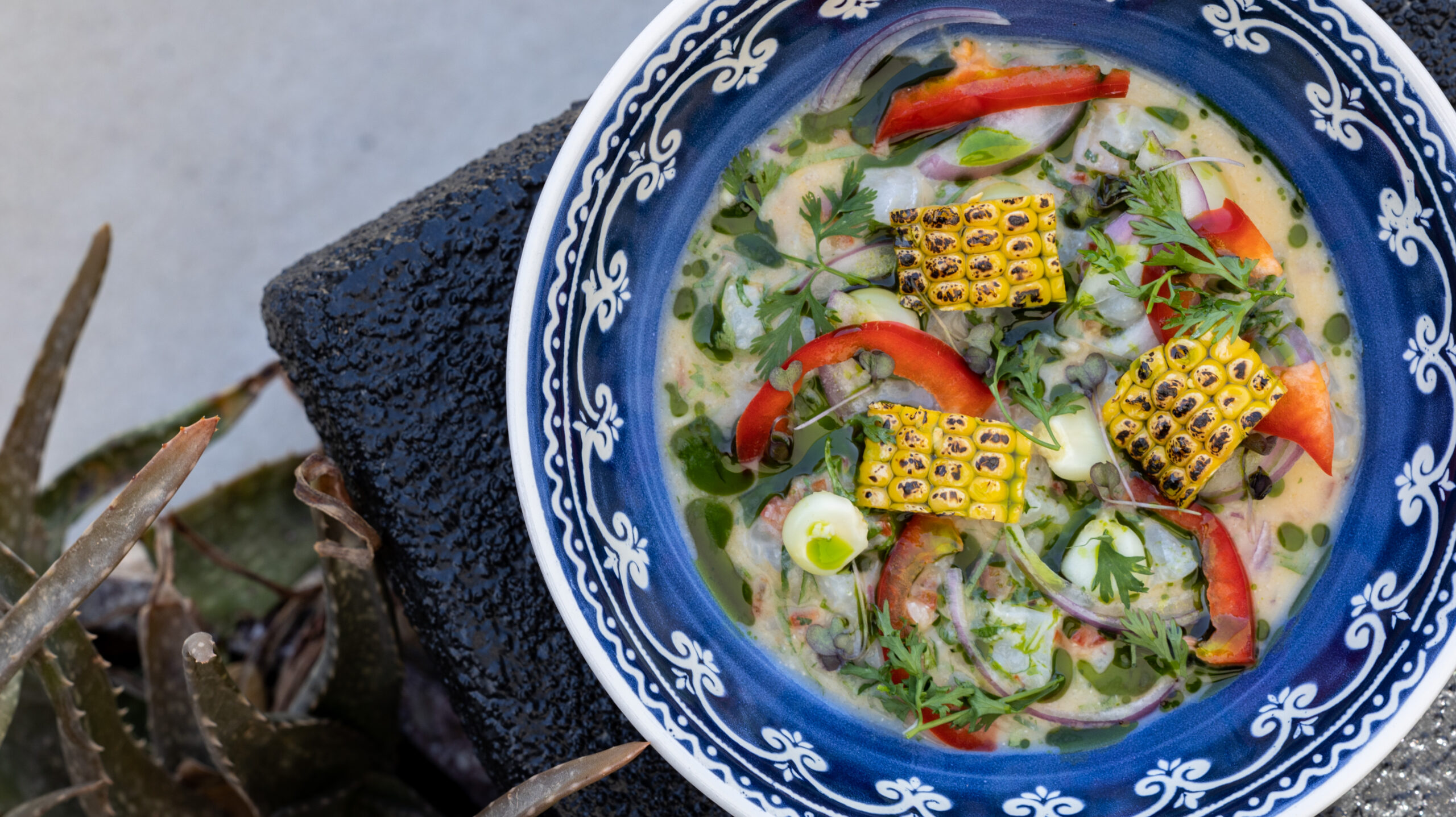 Dine on Barbouni Savoro with white eggplant and smoked watercress oil, or the Organic Rooster with aged wine, corn cream, and esalot with petimezi. The unforgettable Aegean fish soup features rockfish and vegetables with saffron and basil.