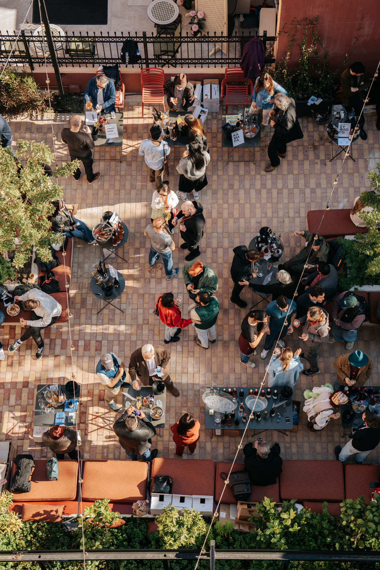 A vibrant, community-focused multispace that combines hotel, hostel, library, courtyard, restaurant, and bar all in one address. The restaurant runs from brunch into dinner, now with a renewed seasonal menu based on Mediterranean cooking with Levantine touches, sharing-style dishes, and locally sourced ingredients. Natural wines, cocktails, and daily specials boost the day-to-night flow, while the outdoor area keeps the place active well into the evening, sometimes hosting small gatherings or other happenings.