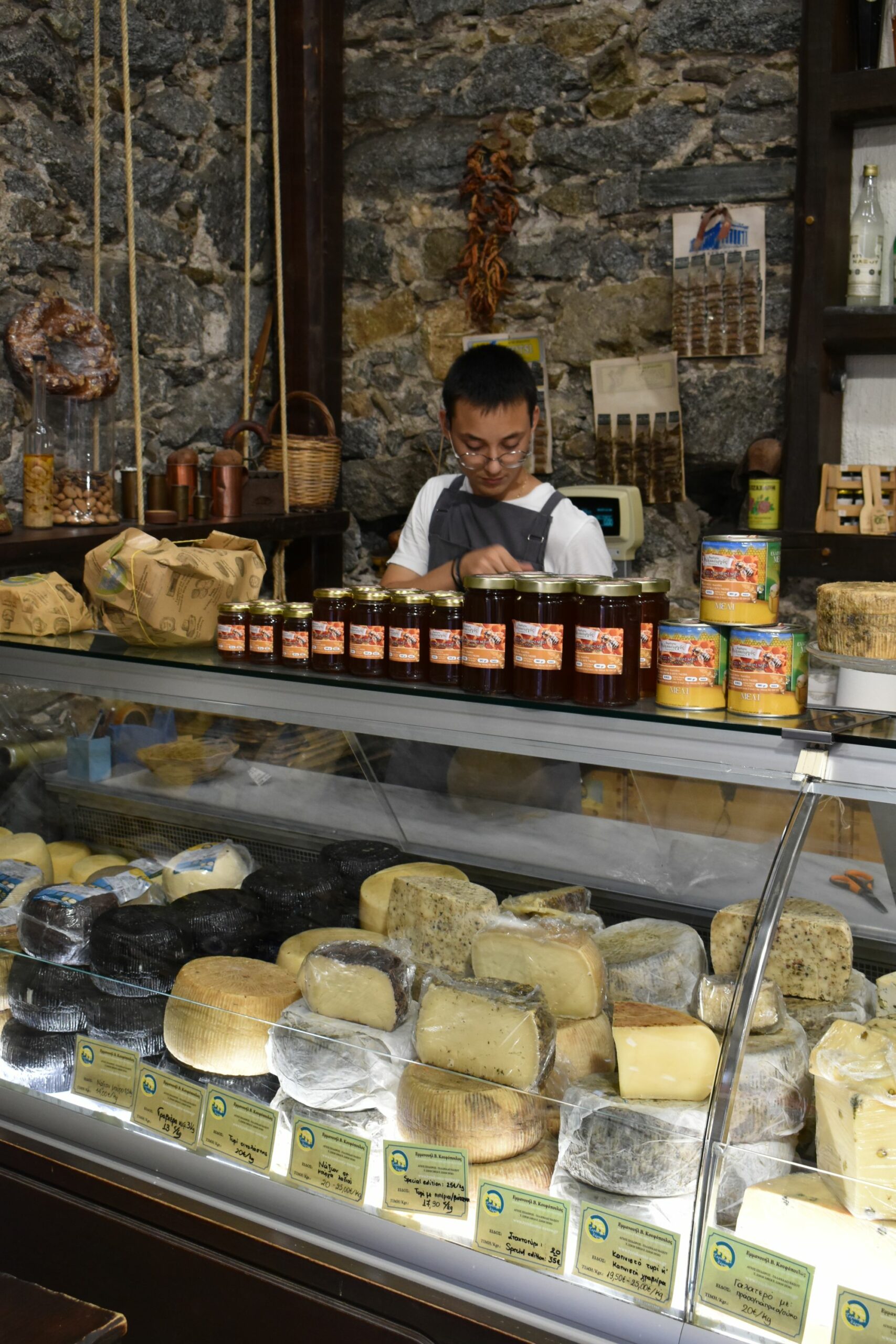 Thyme honey, esteemed as one of the finest, together with the caper, which thrives on the island and is harvested at the cusp of spring and early summer, transforms into the perfect accompaniment for a glass of tsipouro or ouzo. It also finds its rightful place in a salad. The caper, both fruit and leaves, bring a gastronomically balanced twist to the rustic salad, imparting a distinctive approach to this classic choice. Meanwhile, the pies have an important traditional place on the island. Small pies, or pitarakia, are crafted with xerotiri or mizithra cheese and mint, adding a unique and striking note. Rustic barley or rye rings, touloumotyri cheese, and local sausages complement the spectrum of taste sensations.