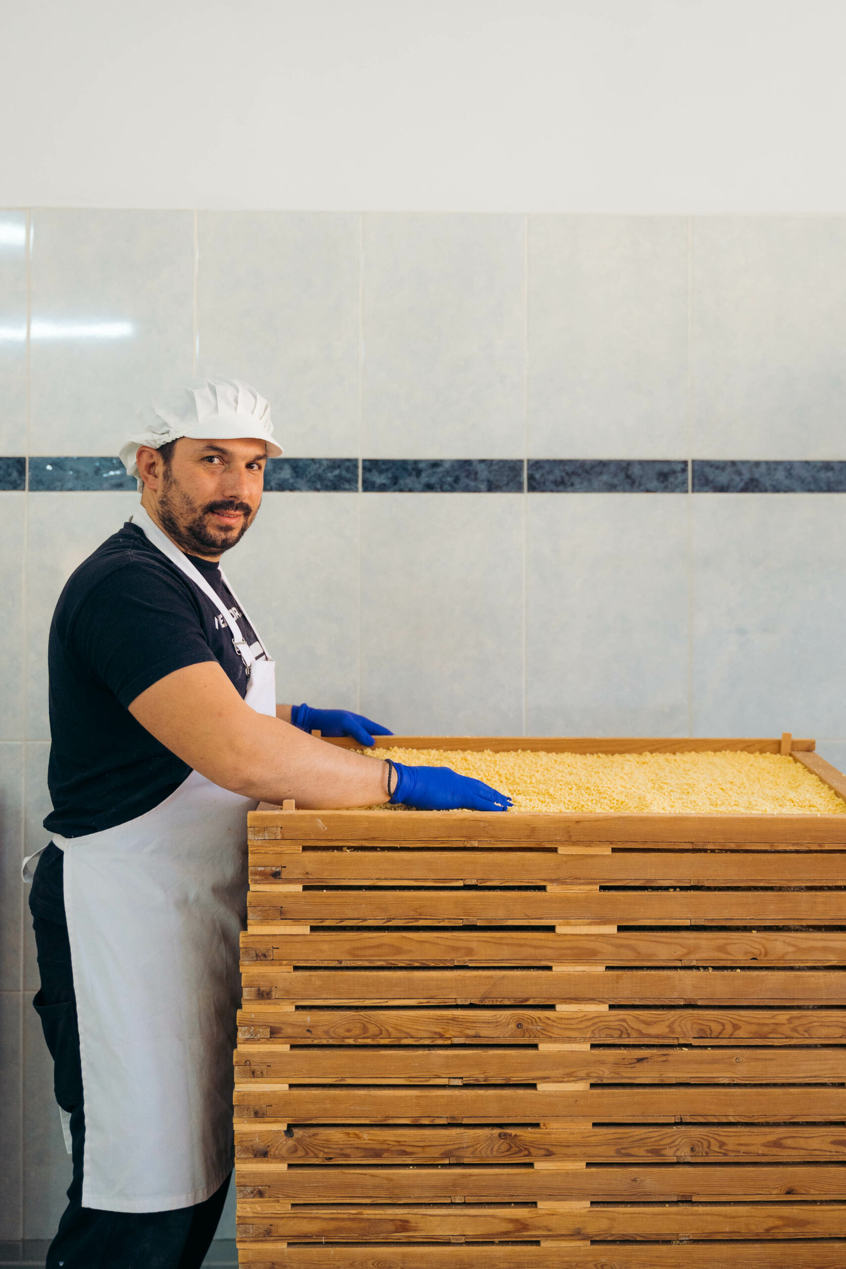 He is 35 years old and is involved in animal husbandry. He has sheep and goats, but that’s not all. He uses their fresh milk to make his own pasta, based on traditional recipes.