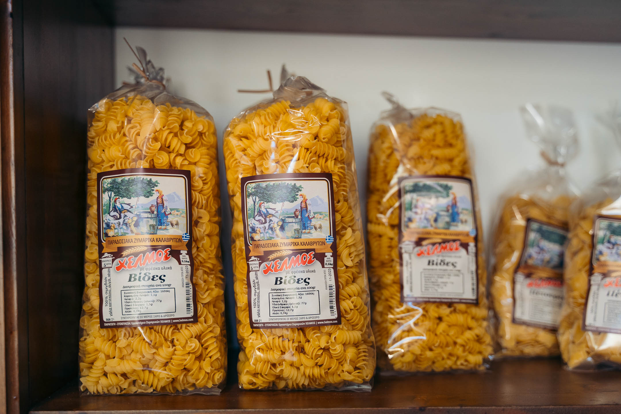 A few hours earlier, the previous afternoon, we were walking down the main pedestrian street of Kalavryta, just below the church. We entered a shop selling beautiful ceramics. We talked with Mr Alexopoulos, we discussed tourism, the difficulties of the Covid-19 era. He told us about his daughter who makes all these beautiful ceramics and who now lives in Florence. Just before we left he told us about the Helmos pasta workshop. “I started this workshop many years ago, in 1986 in particular, and four years ago Andreas took over. He is a worthy young man who makes really delicious pasta and he’s well worth a visit”, he told us.