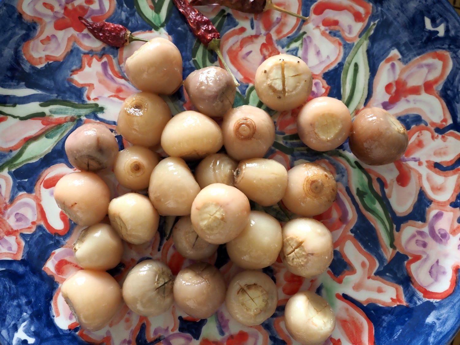 In Skyros, the ‘onions ‘kremmides‘– as they’re locally termed – were presented pickled, seasoned with oil and vinegar, accompanied by other preserved wild plants out of season, like caper leaves and sea samphire. They unearth these bulbs in spring, guided by their tall purple bloom. Here, however, they’d been harvested during ploughing season, desalted by boiling multiple times, then sealed in jars with vinegar and oil for pickling. This entire preparation process, maintaining its natural equilibrium, was highlighted by a contemporary forager from Rhodes, Yiannos: he unearthed them, boiled them two or three times not only to retain their numerous heart-healthy properties but also to mitigate their mild bitterness, and then sealed them in a jar with wine vinegar, a touch of water, and some oil.