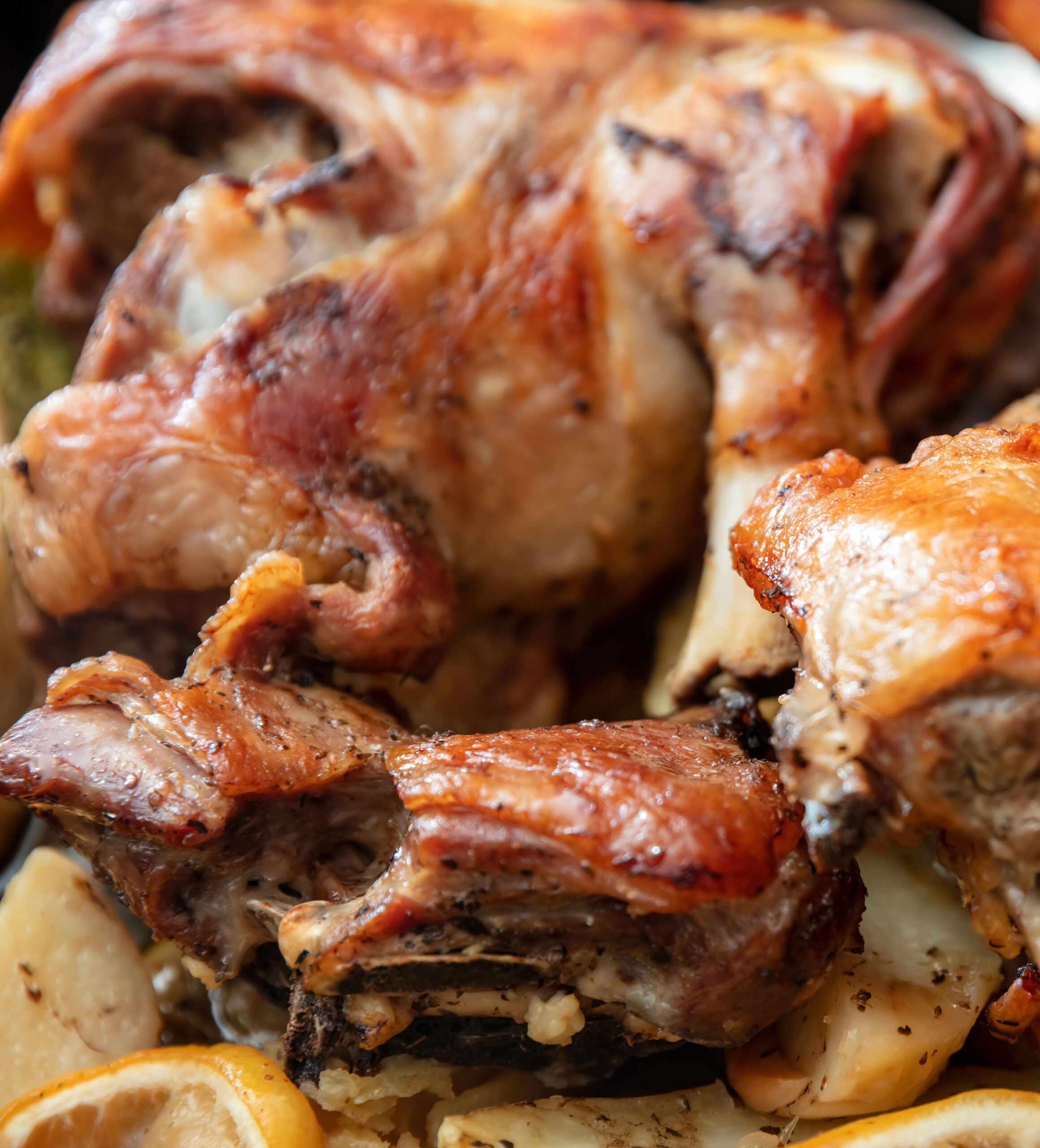 Using a slotted spoon, the lamb is then stuffed and sewn up. The clay pot in which the lamb is placed is called a mououri, from which the dish takes its name. The stuffed lamb is covered with aluminum foil and baked in a traditional wood-fired oven from the evening of Great Saturday until the early afternoon on Easter Sunday. The oven’s opening is sealed with mud to retain the heat.