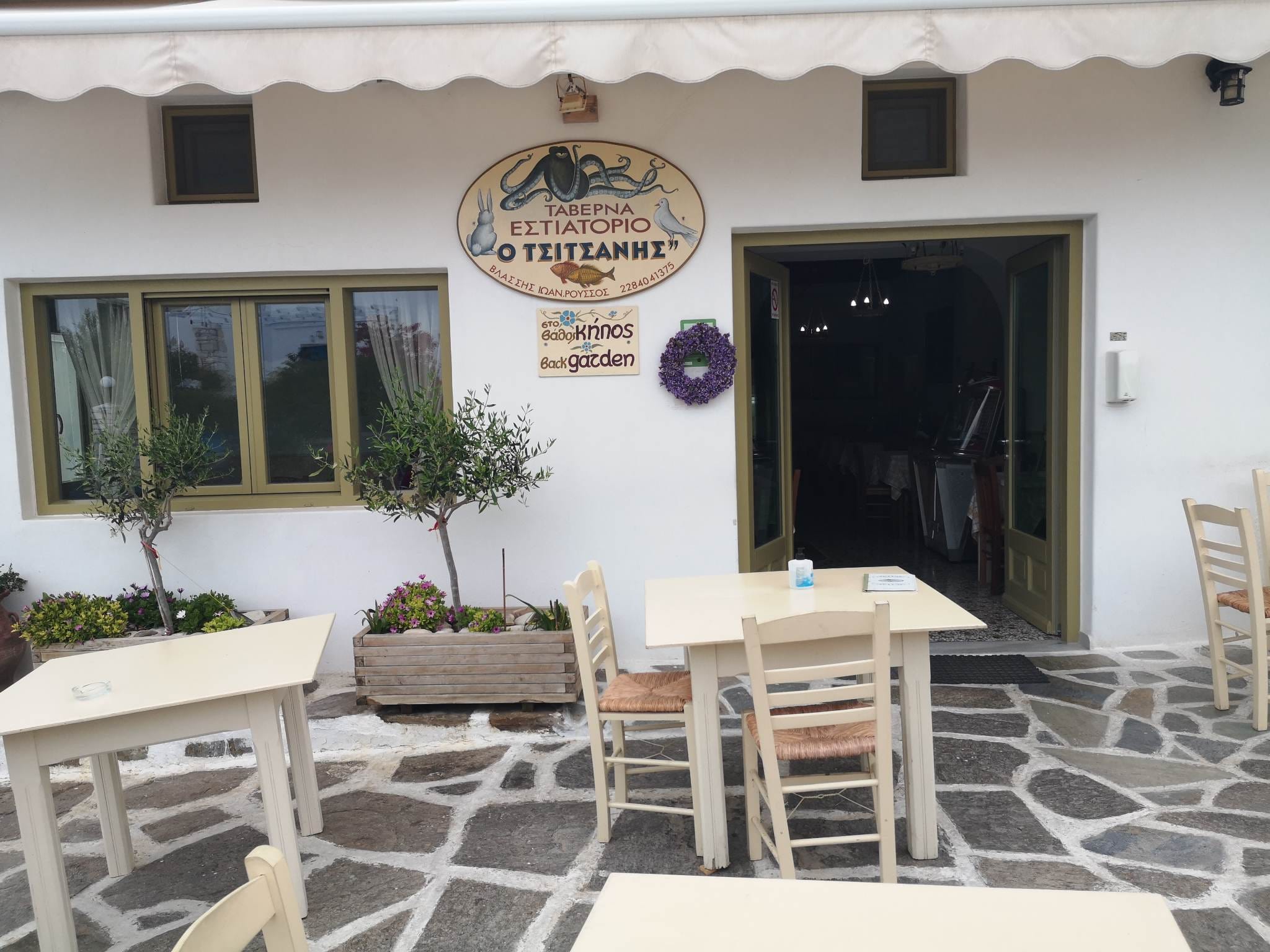 Right on the main square, with retro decor and great doses of character. Apart from the shellfish that Mr Antonis regularly catches, you can enjoy a variety of delicious dishes including capers salad, baked eggplant with tomato and cheese, stuffed calamari, octopus in wine sauce, baked goat with potatoes.